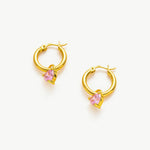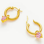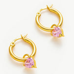 - Elegant artistry inspires these earrings, which showcase dainty drops of bezel-set heart gemstone. Pink Heart Drop Earrings are handcrafted from hammered 18kt gold to achieve a textured finish, then finished with a clicker fastening.