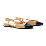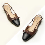 - You'll love our LENA slingback flats.The originality of their lines combined with the play of colors make them subtle, feminine sandals that will go perfectly with formal outfits as well as more casual looks.The slight heels considerably lift the silhouette without affecting the foot when walking.