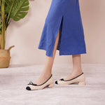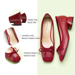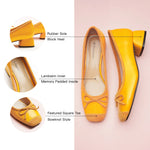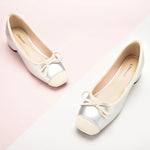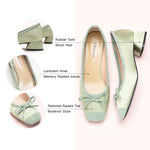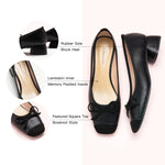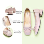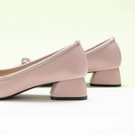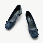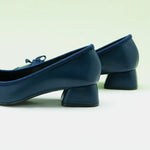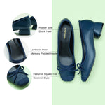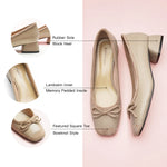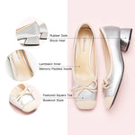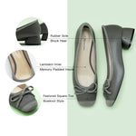 - Dainty yet striking, these low heels add a stunning touch to any wardrobe.The exquisite finish, adorned with a bow detail, elevates the feminine allure. The rounded square-toes pair with the unique stitched upper, crafting an elegant look. Sturdy block heel boost height, making this pair ideal for weekend dates.