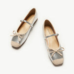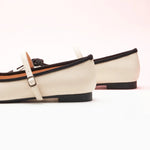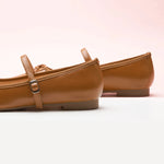 Inspired by classic ballet shoes and mary janes, these mary jane flats showcase a timeless round-toe design and retro two-tone finish, reminiscent of a poised ballerina. They feature a delicate bow embellishment, as well as an adjustable strap, ensuring a secure fit while adding a touch of feminine refinement.