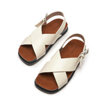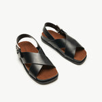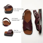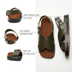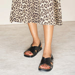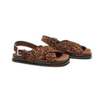 - The sandal gives you a new take on the classic two-strap design, with crossover straps and an elegant pin buckle, available in both leopard print and solid color options.The suede footbed lining,made from genuine split leather with a napped finish, offers a velvety soft texture and excellent moisture absorption. It wraps the foot comfortably for a look that improves with wear, while the anti-slip insole and wear-resistant sole provide enhanced stability and comfort.
