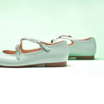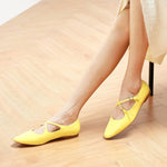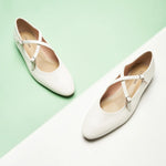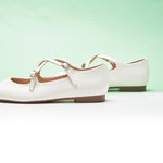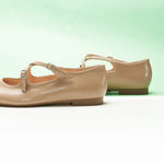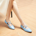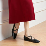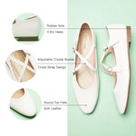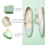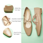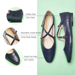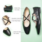 Feature a refined cross-strap design mary jane, providing both elegance and comfort. The almond toe enhances a refined look, making them a versatile choice for both casual and formal occasions.The exquisite finish makes the shoes look very textured. The crystal adjustable strap and buckle allows for a wider fit.