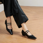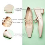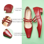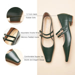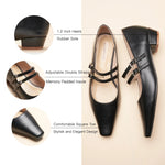 - Featuring a square-toe silhouette and sturdy block heels, these double-strap block heel exude timeless vintage charm. The two adjustable buckle straps not only ensure atailored ft but also add a touch of fashion. Versatile enough to go with everything, they promise effortless style on every occasion.