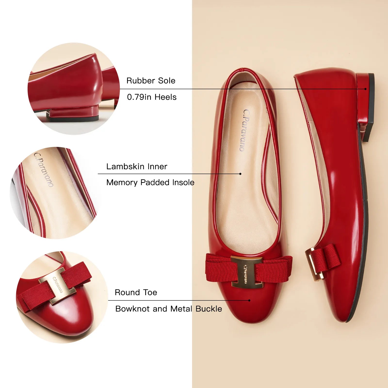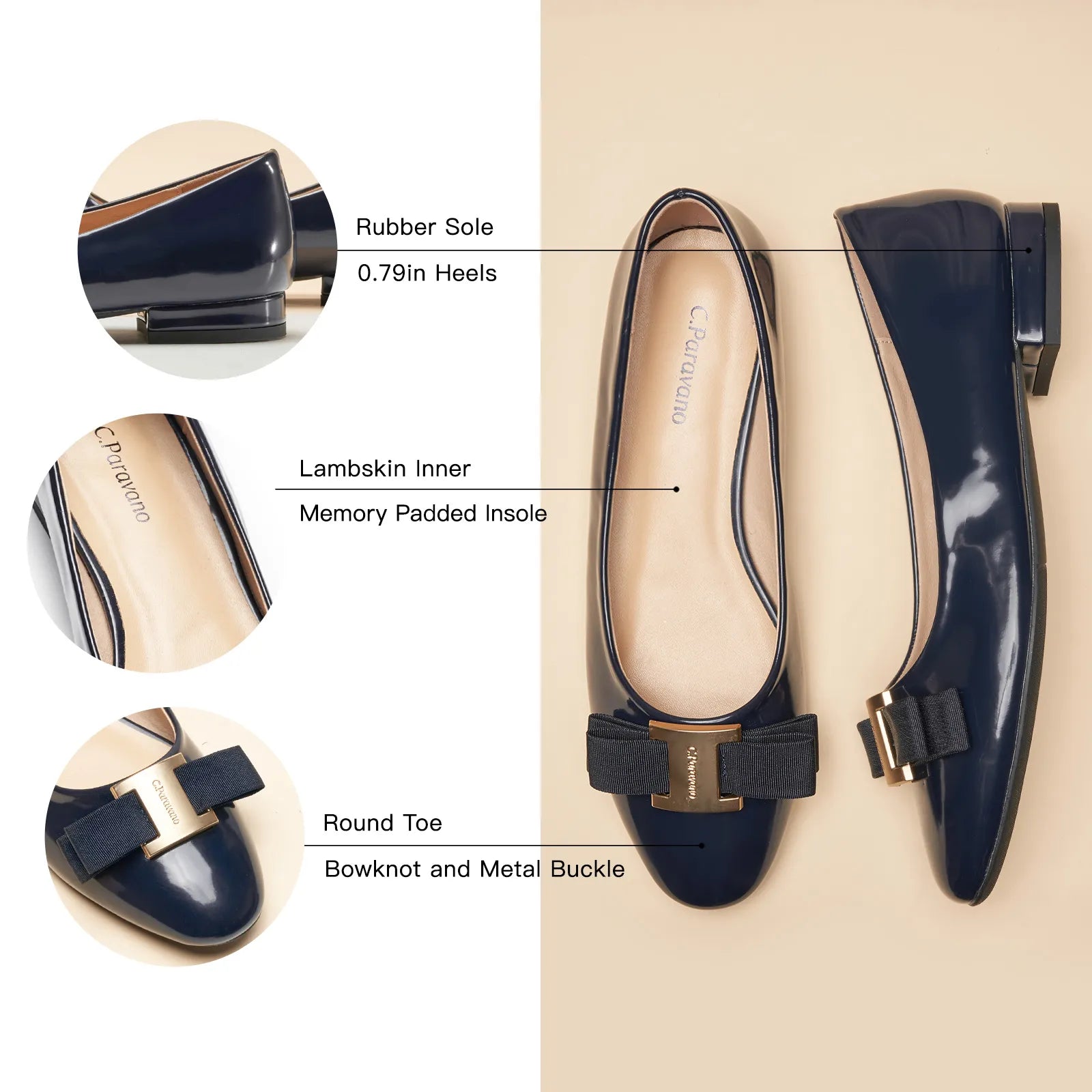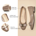 Step into sophistication with these chic flats featuring a beautiful bow and sleek metallic accents. The shoes are designed with a soft, memory padded insole for all-day support and comfort. The minimalist style ensures versatility, easily pairing with various outfits from casual to formal.