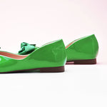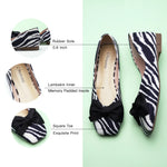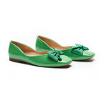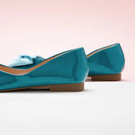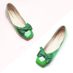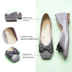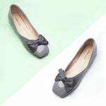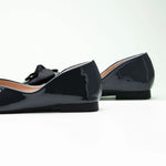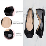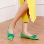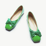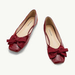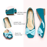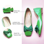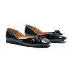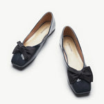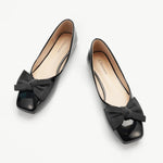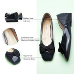 - With a patent leather finish, this pair will instantly give your outfit a stunning shine. The square toe offers optimal toe comfort. A cloth bowknot on the toe cap and a grippy sole adorned with prints add sophisticated design aesthetic and visual interest elevating an otherwise simple design.