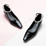Ankle Pearl Chain Low Heel (Lucia) (SALE)