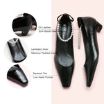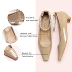 - Achieve the refined lady aesthetic with these exquisite low heels. Featuring a chic square-toed design and kitten heel, this pair is perfect for special occasions, dinner dates and even weddings. Bonus points go to the pearl chain strap at the ankle that adds subtle shine and elegant vibe for any outfit.