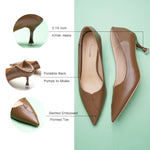 - These pointed-toe pumps are perfect for the office. They feature a two-layer design and a soft lychee leather finish that will complement a wide range of outfits in your wardrobe. The kitten heels offer just the right amount of lift for all-day wear. The foldable back pad adds a mule-inspired ease. Pair them with your favourite pantsuit or a pencil skirt on office days.
