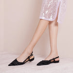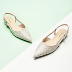 - Crafted from brand-new animal prints, this pair is a flat pointed-toe slingback with a 2.5cm block heel. The exquisite finish makes the shoes look very textured. The adjustable strap and buckle allows for a wider fit.