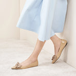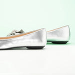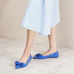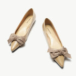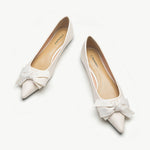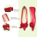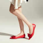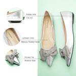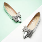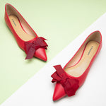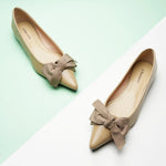 - Grace your wardrobe with these matte pointed-toe flats. Fitting leather construction enhances the fit, and a grippy sole adorned with iconic prints ensure non-slip and wear resistance. Offset by a large cloth bow at the vamp, these flats capture attention with every step, striking the perfect balance between casual and elegant style.