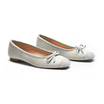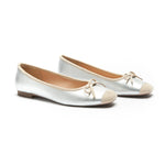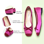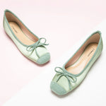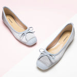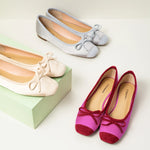 These flats are crafted from the finest silk, whose sheen adds a luxurious touch to your outfit, while the suede toe cap is finished with a delicate suede bow to take your outfit to the next level.