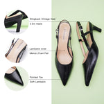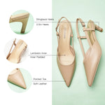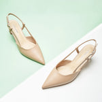 - These pointed-toe slingback pumps are perfect with any outfit. The classic color means they'll never go out of style. The slim adjustable straps not only allow for a wider fit, but also make them even more sophisticated and elegant.