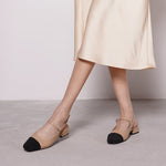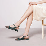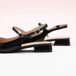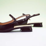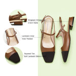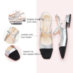 - These slingbacks adopt a square toe design, which is more accommodating to different foot shapes. The splicing design of the toe and the shoe body presents a structuralist aesthetic. The adjustable strap and buckle allows for a wider fit.