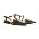 - Featuring a sharp, pointed-toe silhouette that creates a leg-lengthening effect. In print, they are perfect for both daily wear and parties, while their textured finish adds a subtle refinement for your outfit. Laced up with a C-sharp buckle-fastening slingback strap, this pair provides a sense of security and comfort for your feet while still being stylish.
