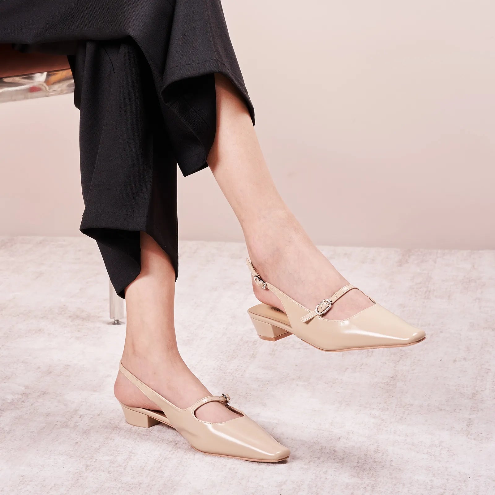- Featuring a square-toe silhouette and sturdy block heels, these open back block heel exude timeless vintage charm. The two adjustable buckle straps not only ensure atailored ft but also add a touch of fashion. Versatile enough to go with everything, they promise effortless style on every occasion.