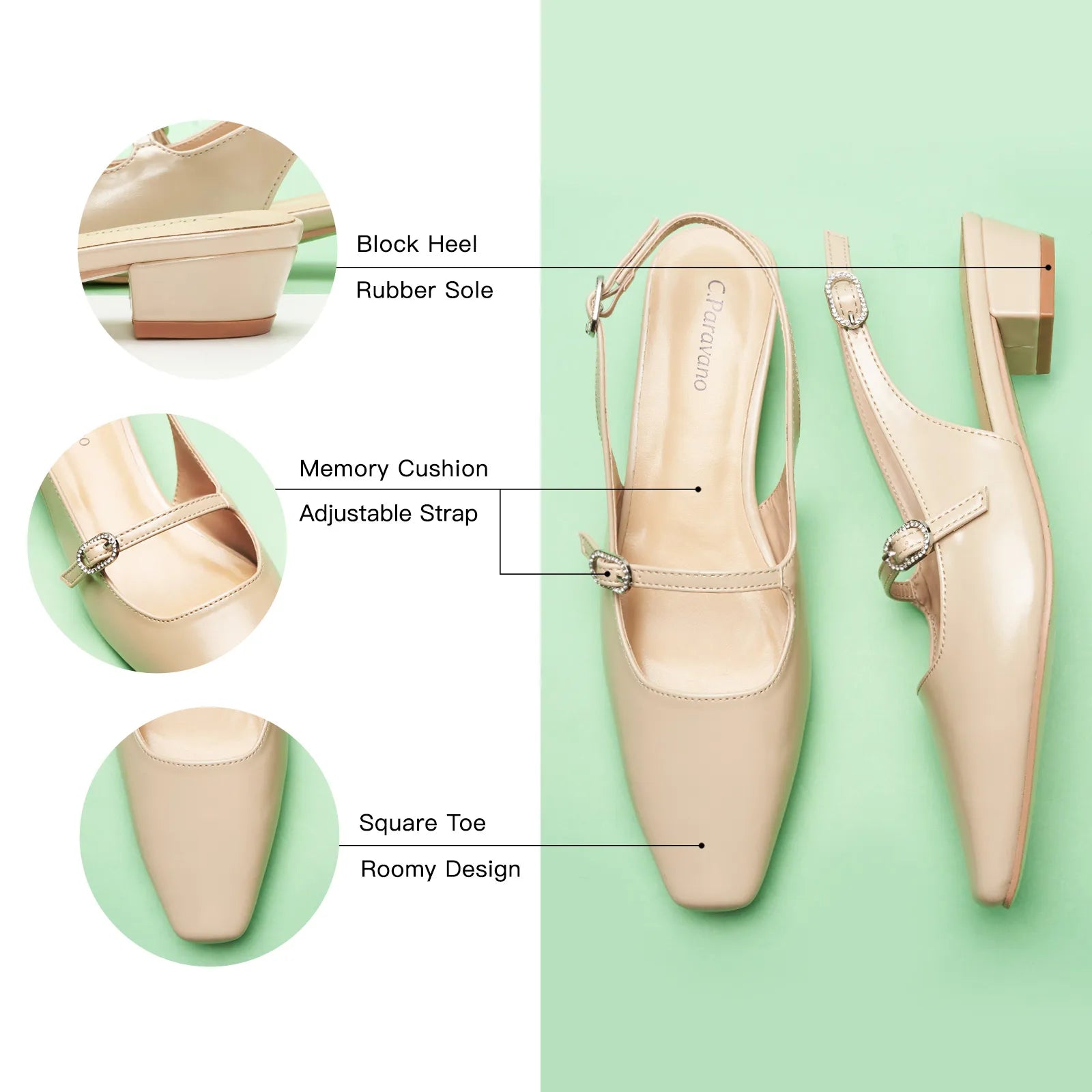 - Our slingbacks are expertly handcrafted to US size standards and feature adjustable buckles for a personalized fit, allowing you to fine-tune the fit with ease,even if you're between sizes.