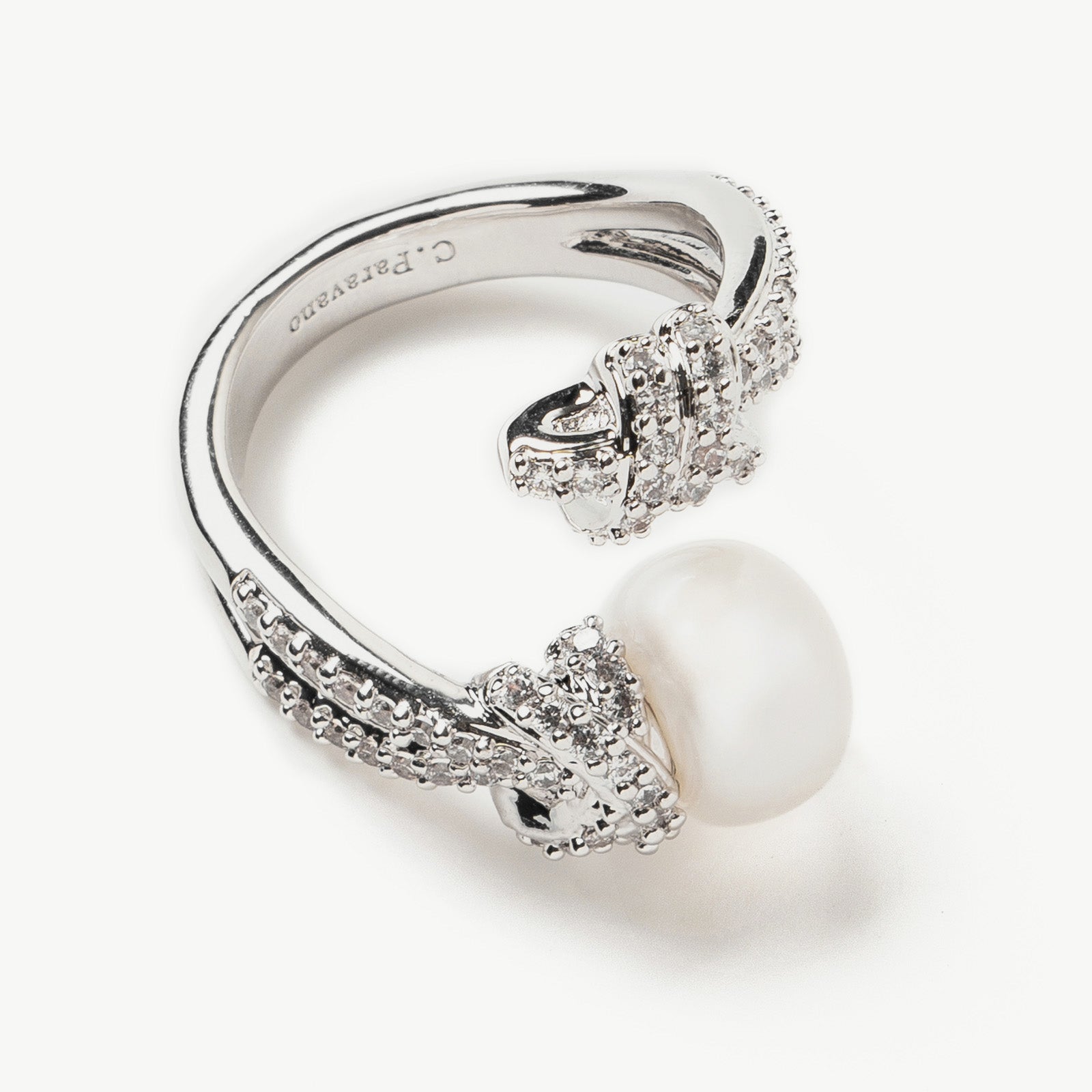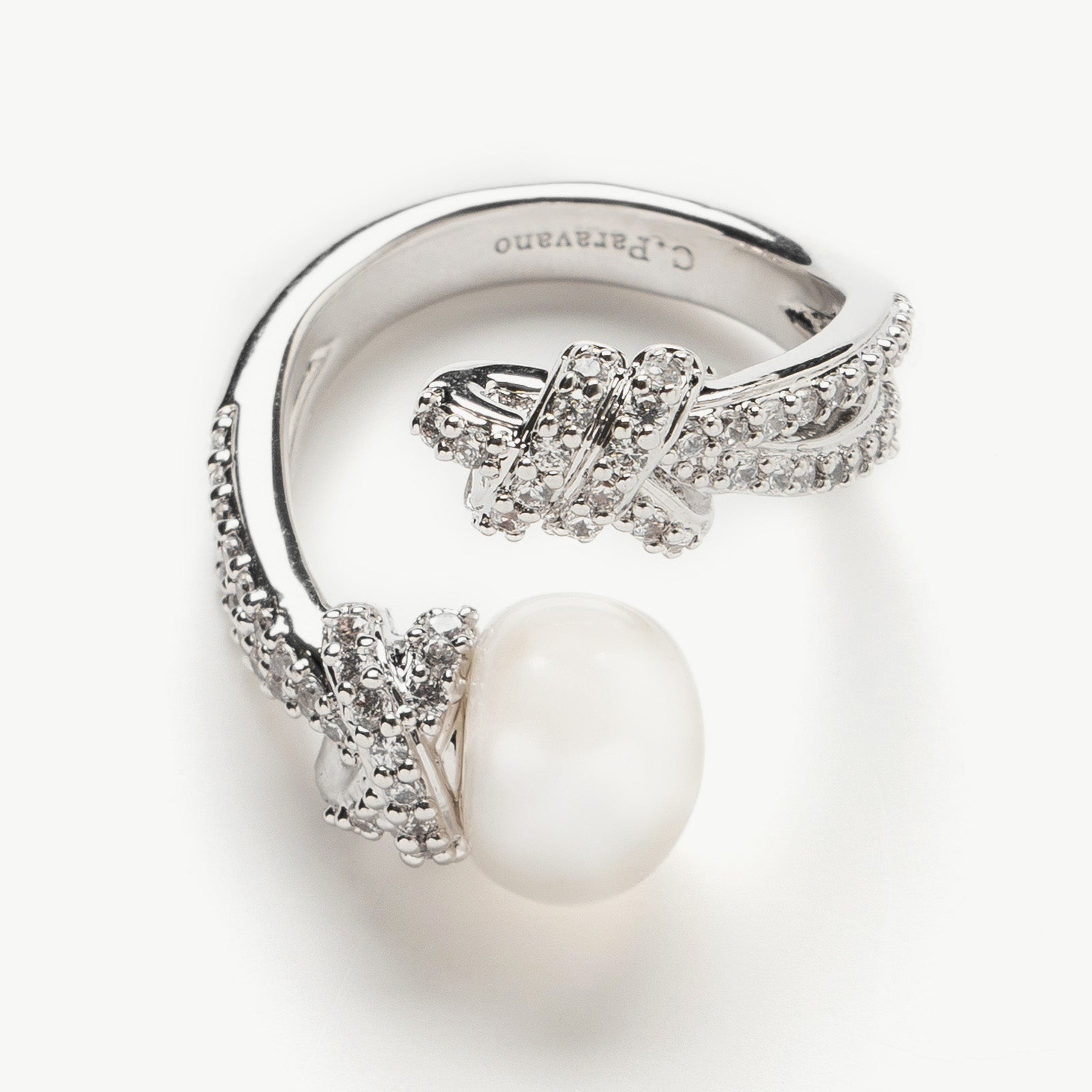 - Elevate your elegance with our latest masterpiece – the Crystal-Embellished Knot Pearl Ring. This exquisite fusion of pearls and crystals is a celebration of sophistication, adding a touch of glamour to your every gesture.