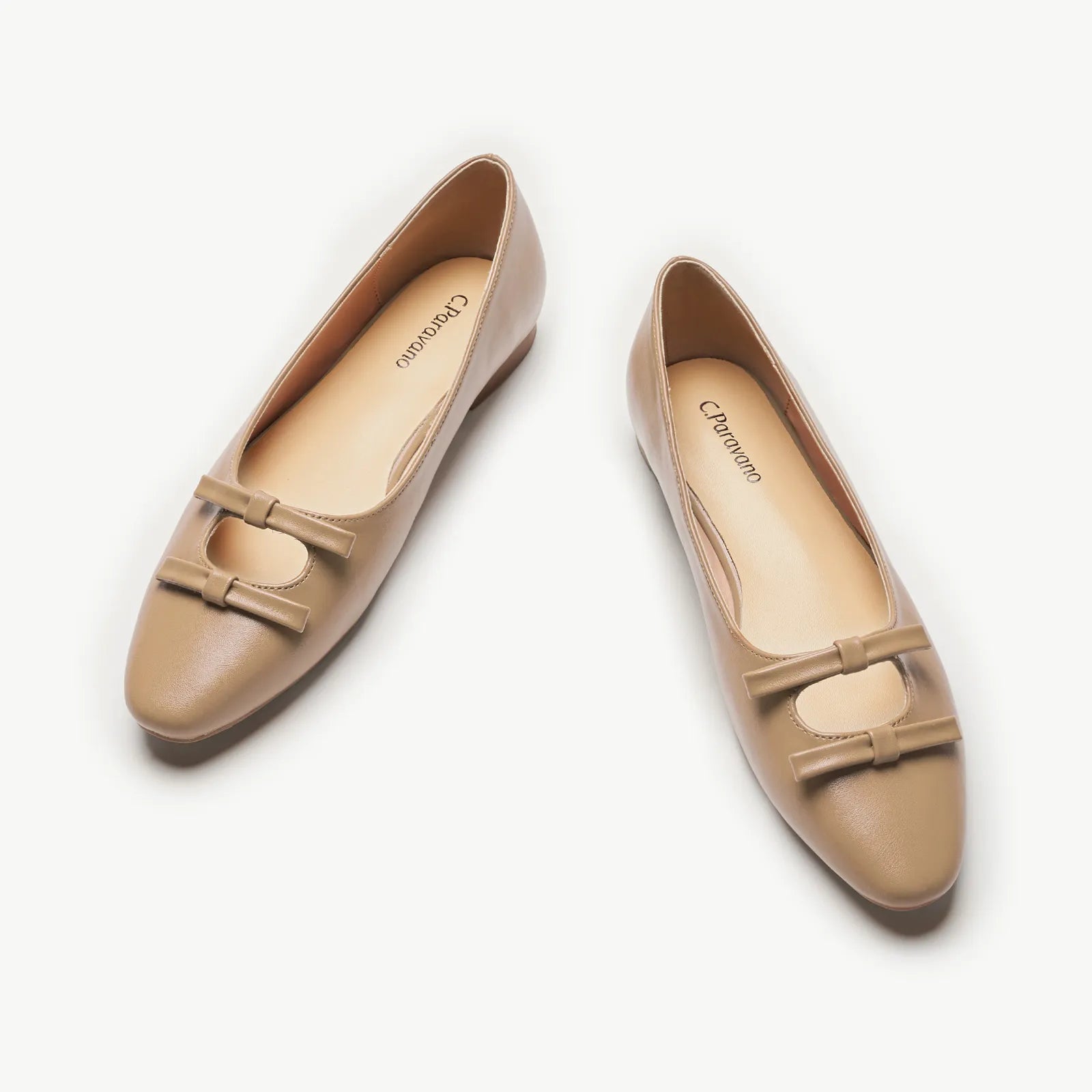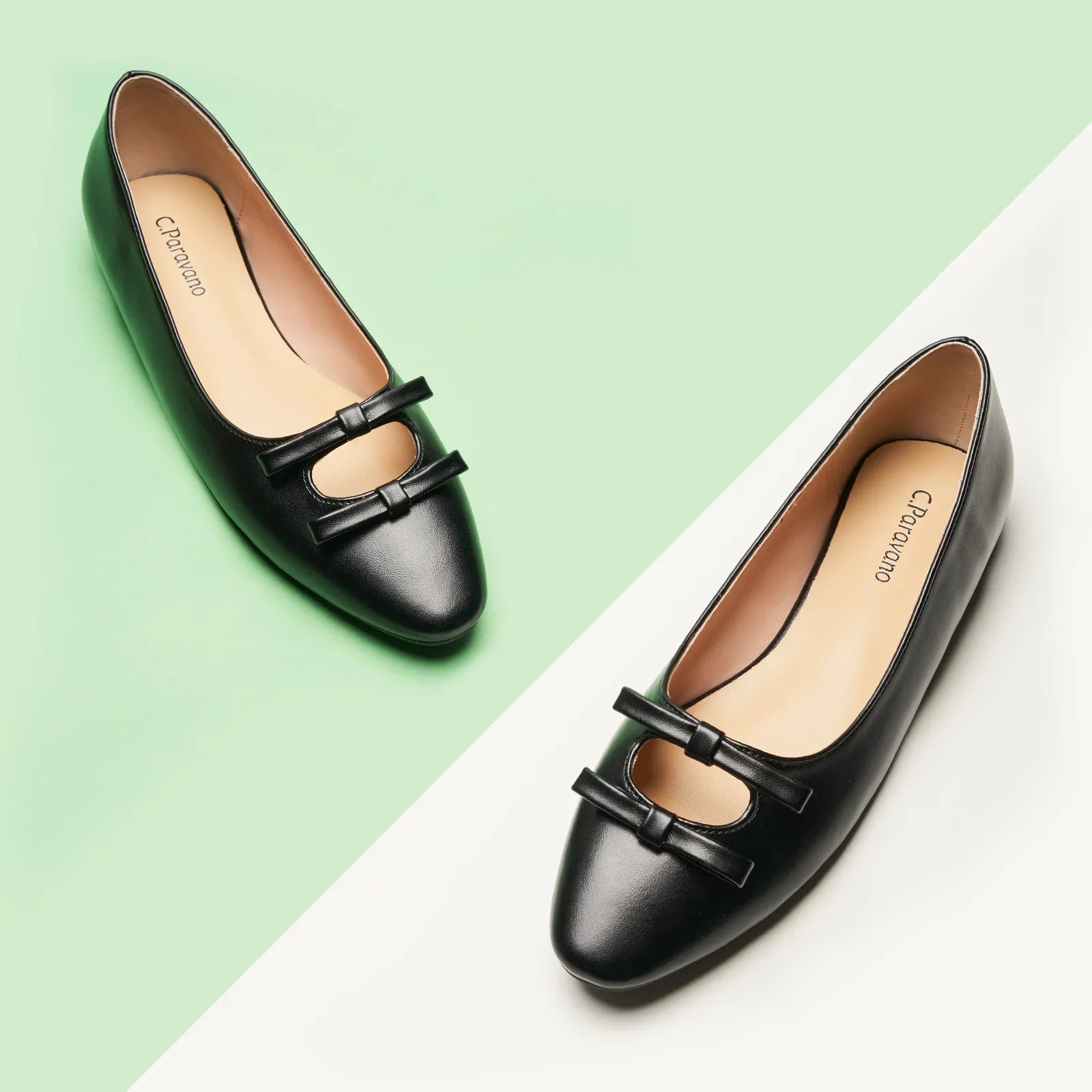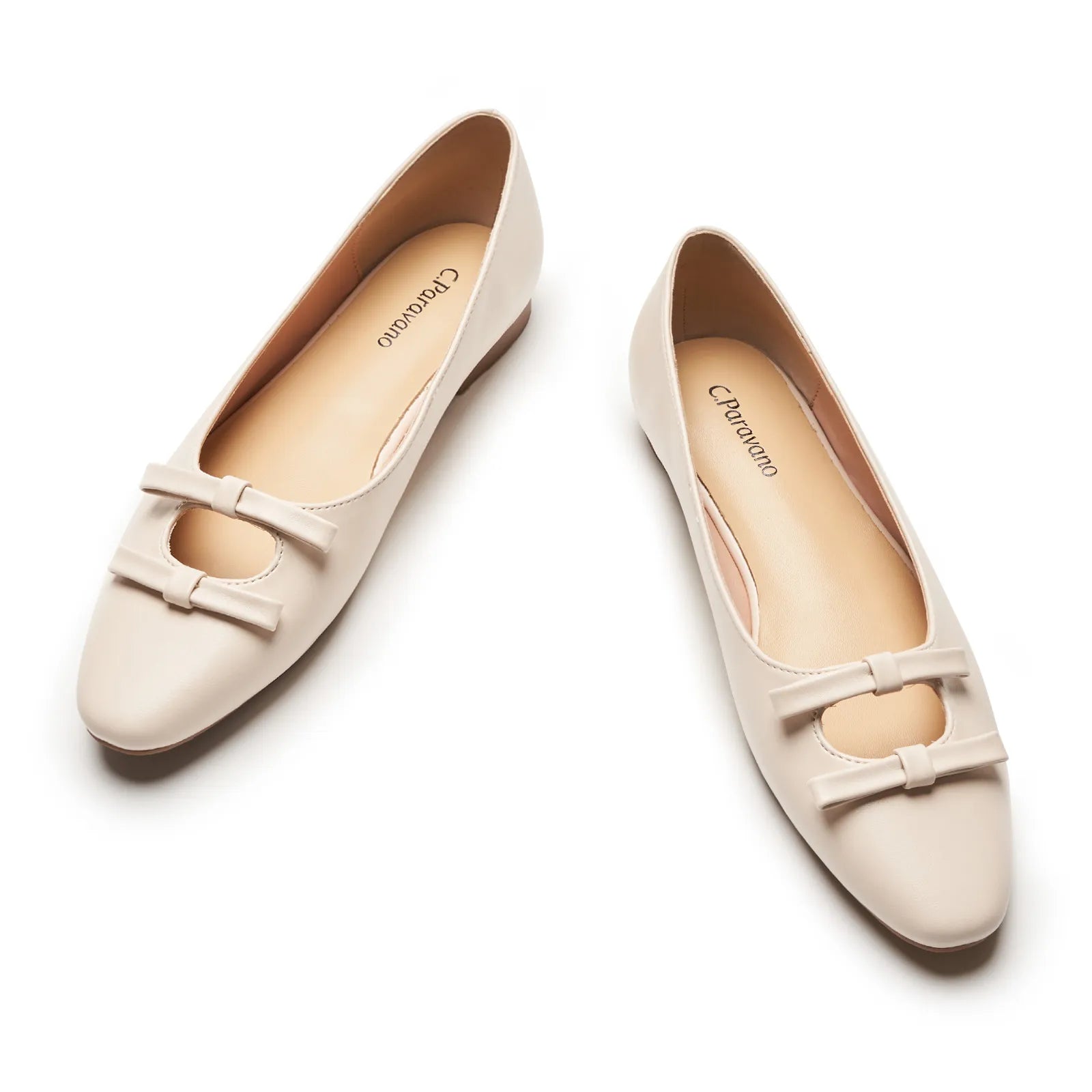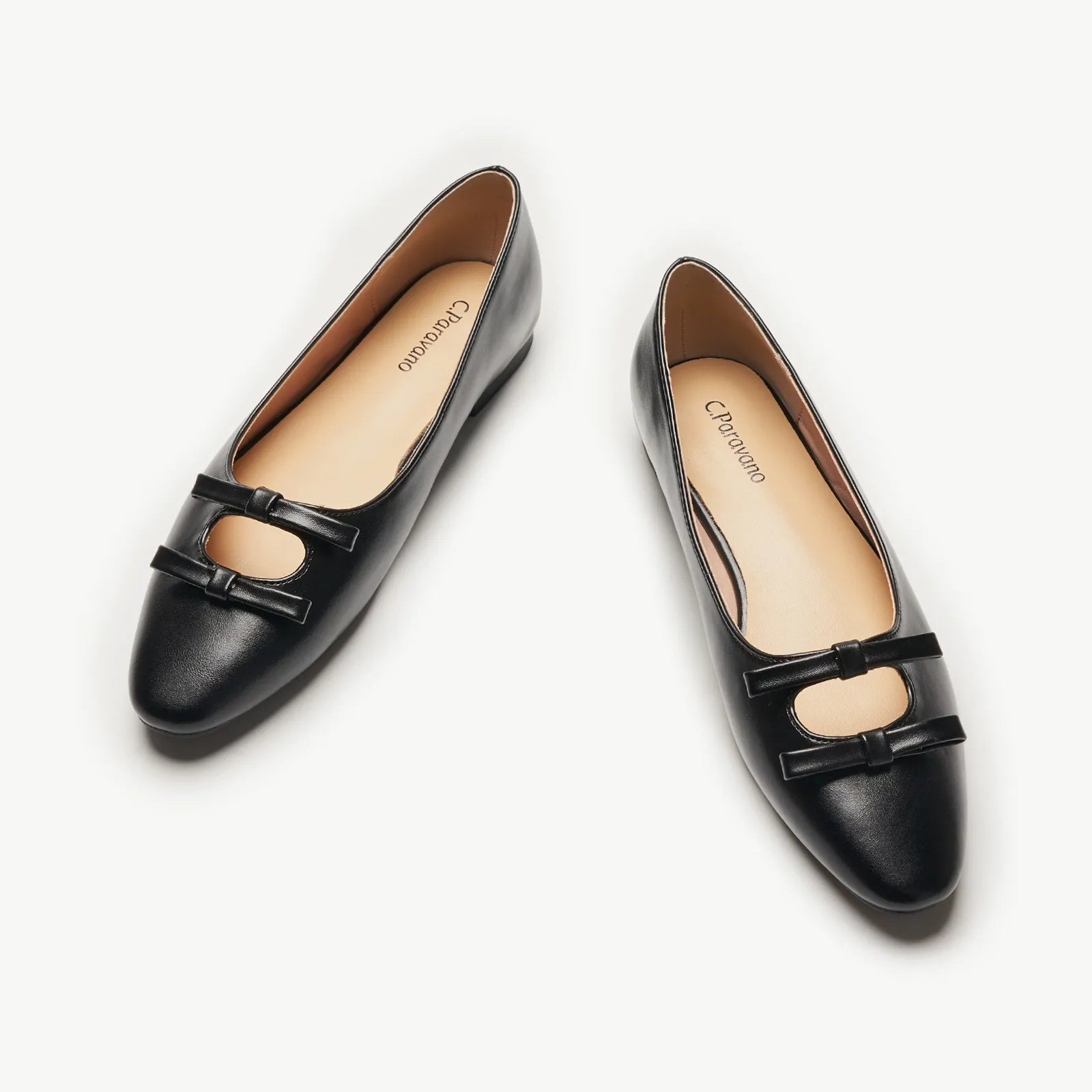 - These ballet flats embody both elegance and comfort. Featuring stylish bow detail on the toe and a unique cutout design, they add a chic touch to any outfit. The cushioned insole ensures all-day comfort, making them perfect for both casual and formal occasions. Walk with confidence and grace in these versatile flats.