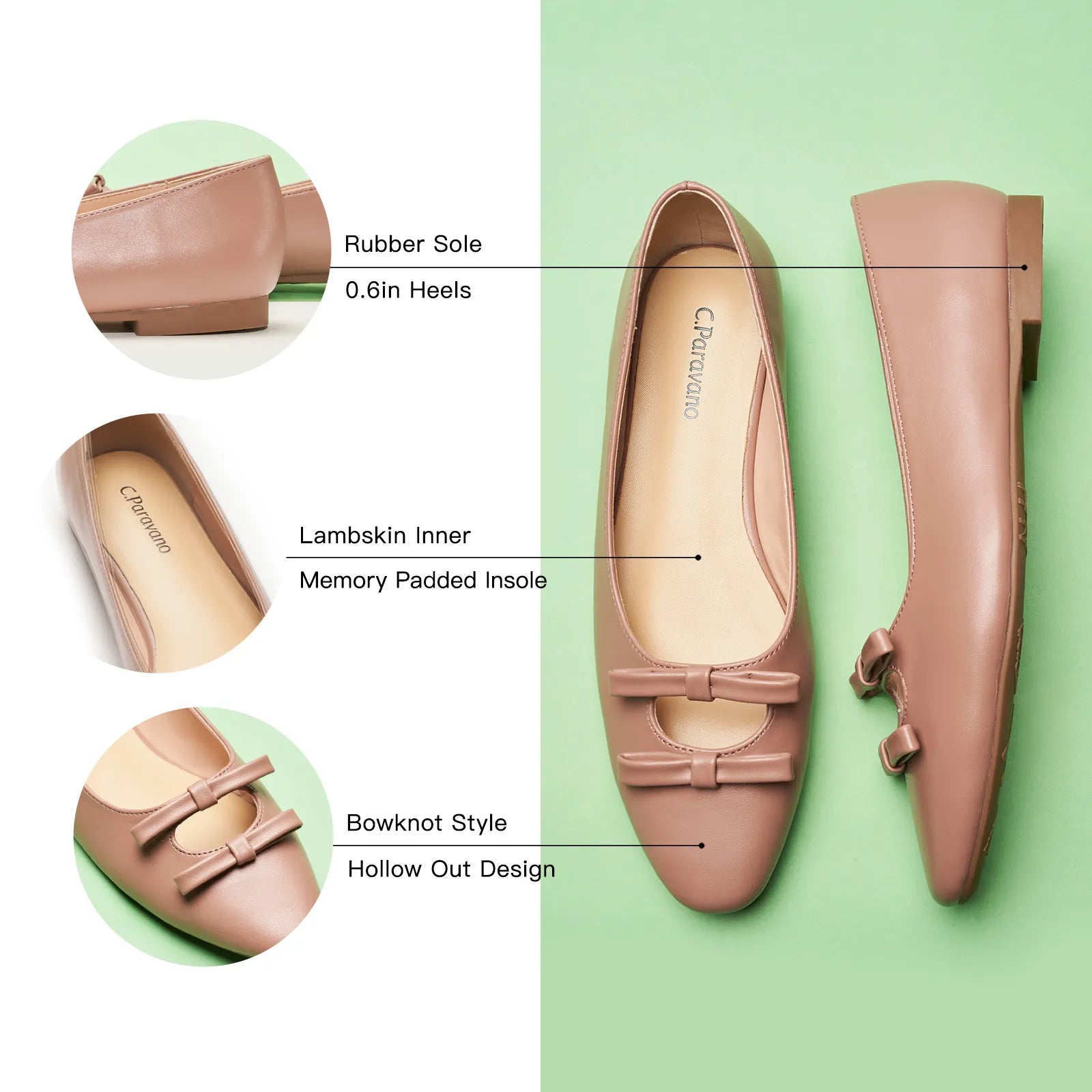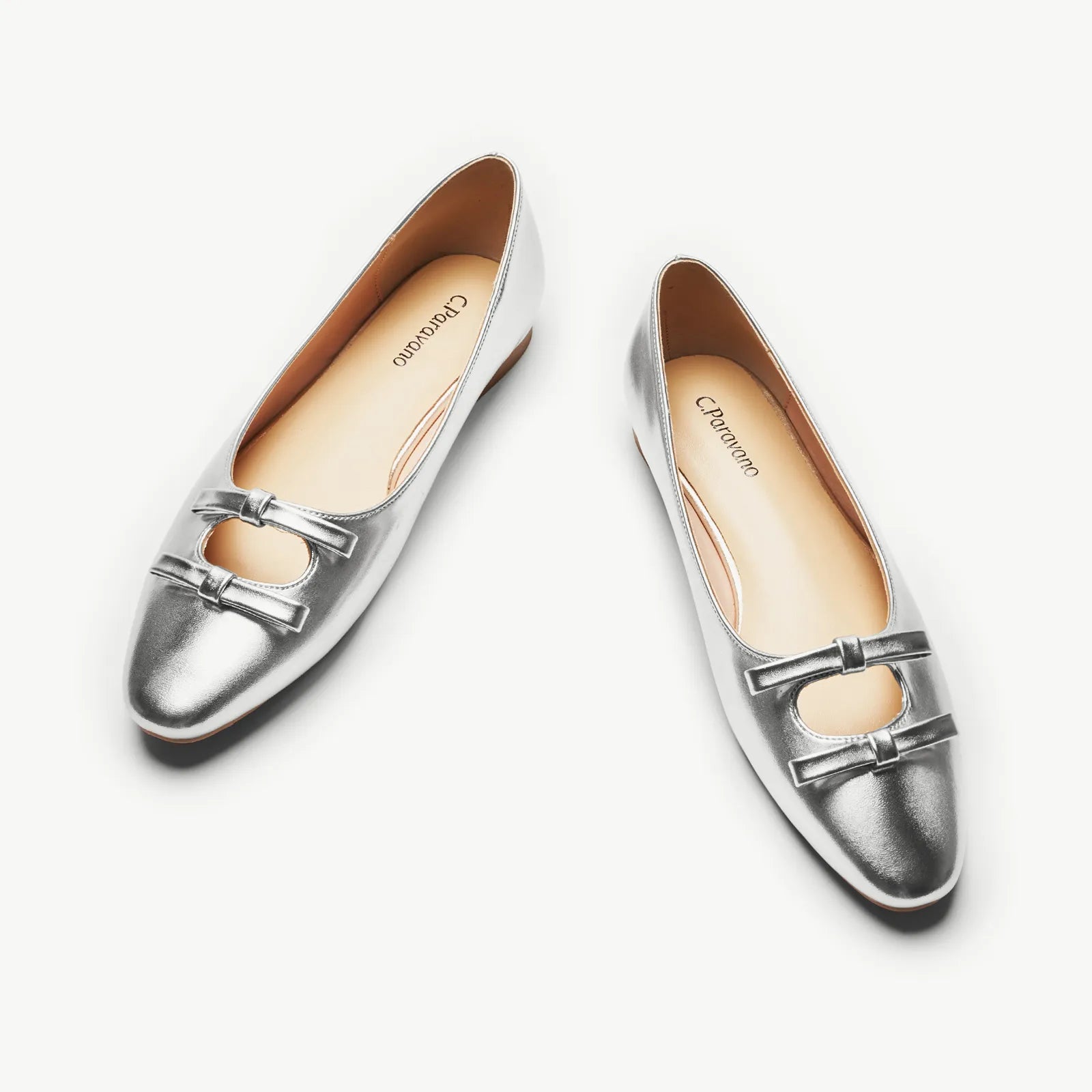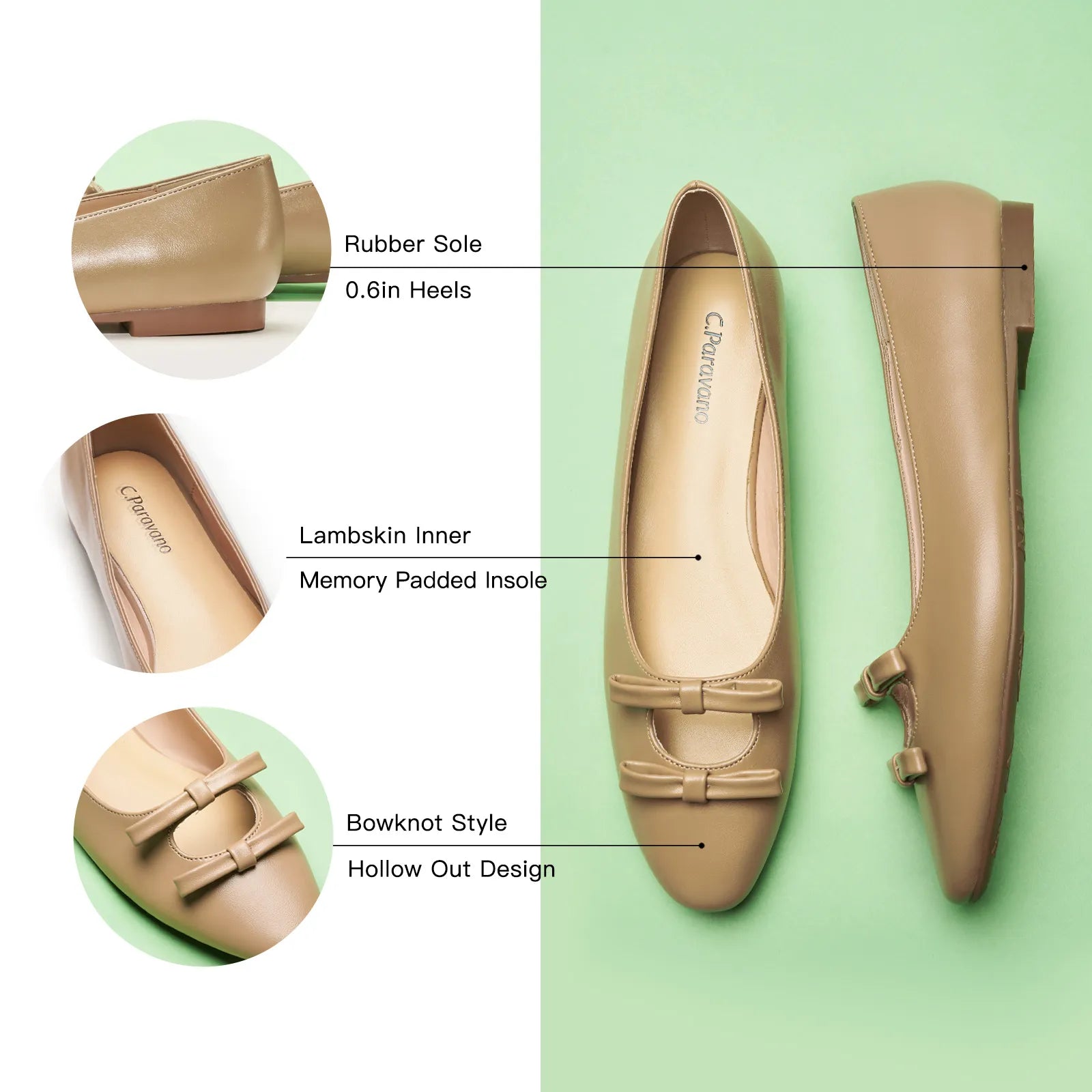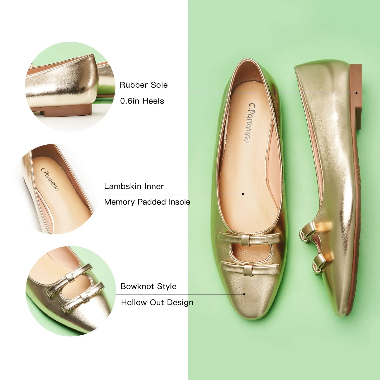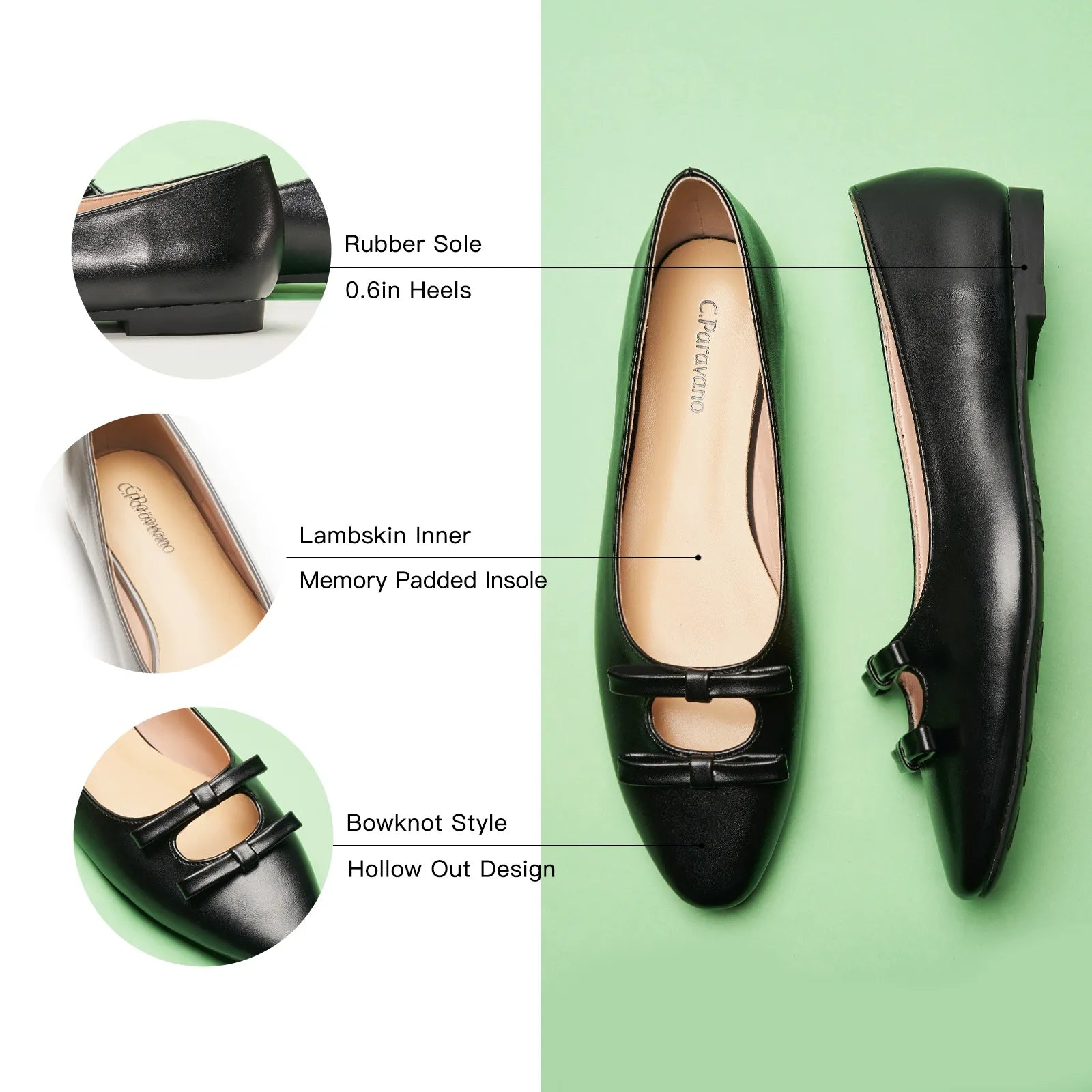 - These ballet flats embody both elegance and comfort. Featuring stylish bow detail on the toe and a unique cutout design, they add a chic touch to any outfit. The cushioned insole ensures all-day comfort, making them perfect for both casual and formal occasions. Walk with confidence and grace in these versatile flats.
