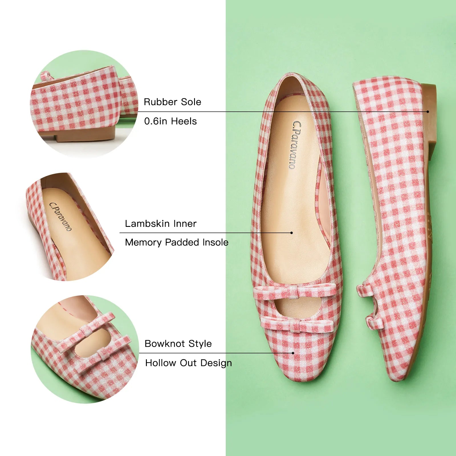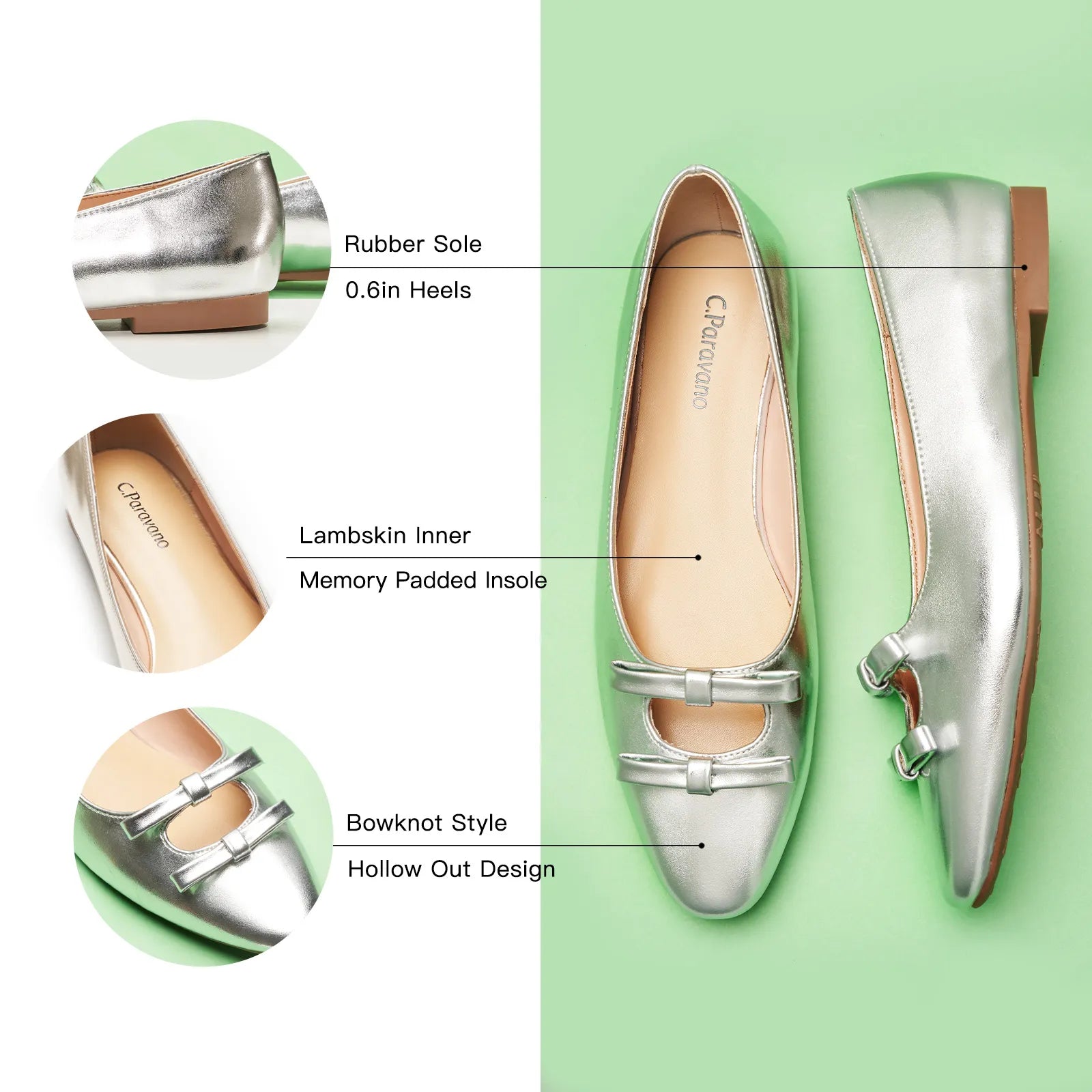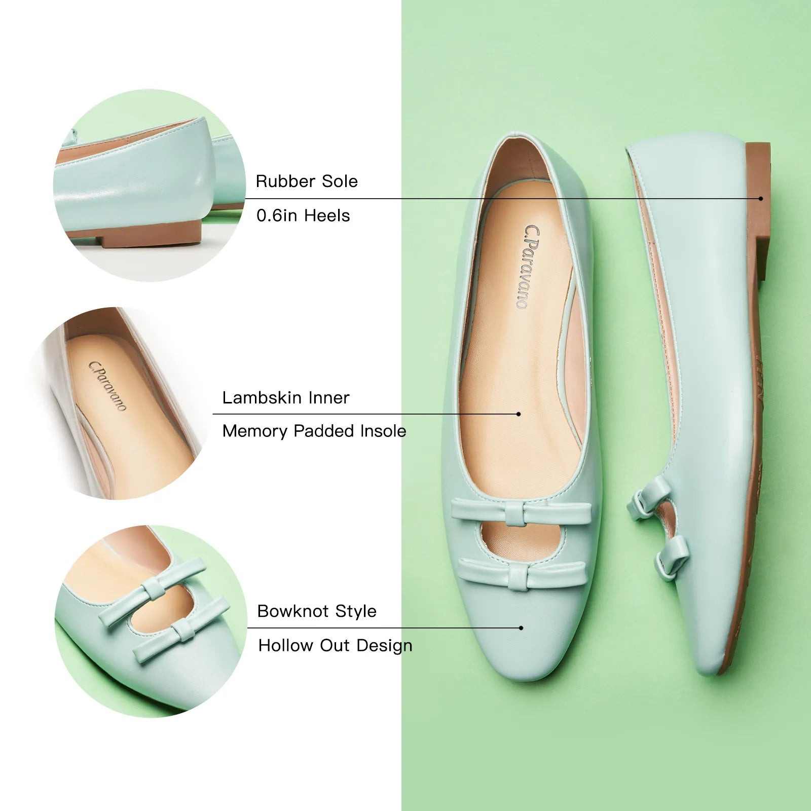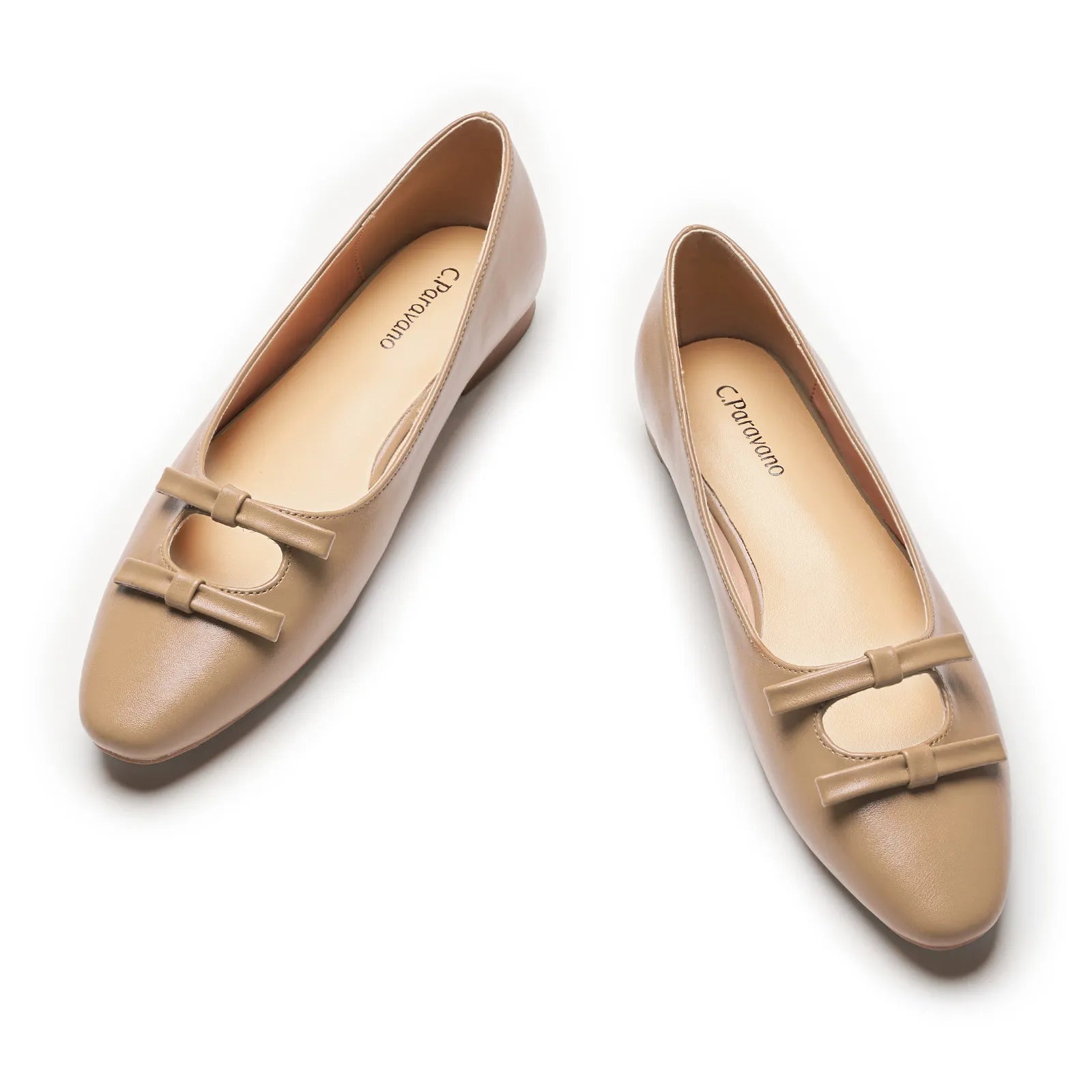 - These ballet flats embody both elegance and comfort. Featuring stylish bow detail on the toe and a unique cutout design, they add a chic touch to any outfit. The cushioned insole ensures all-day comfort, making them perfect for both casual and formal occasions. Walk with confidence and grace in these versatile flats.