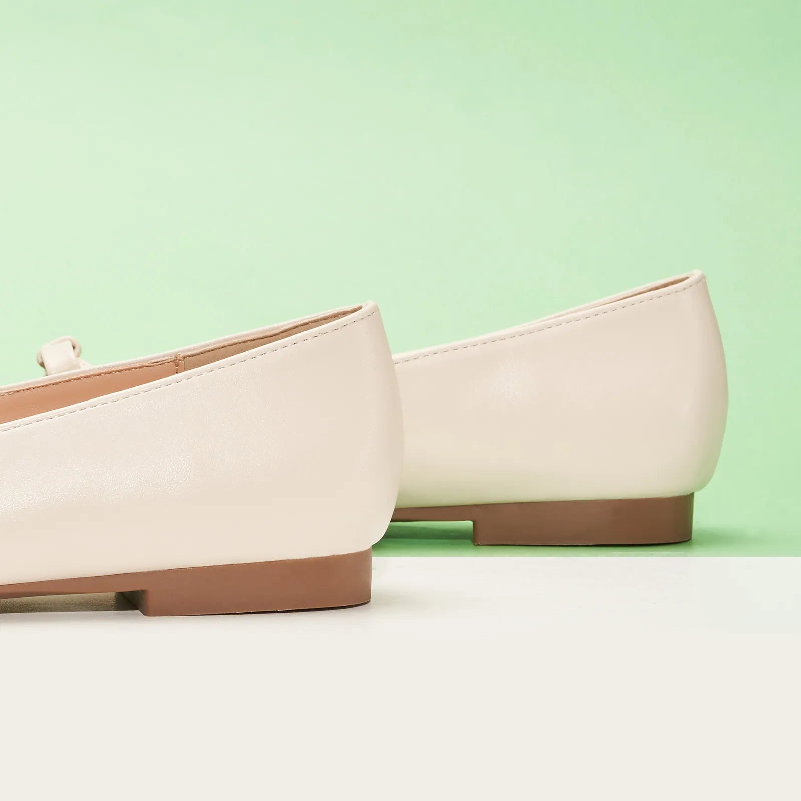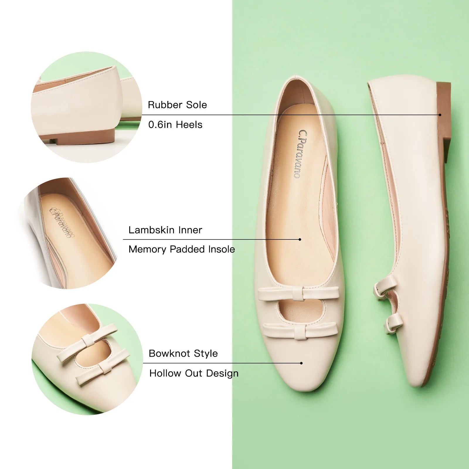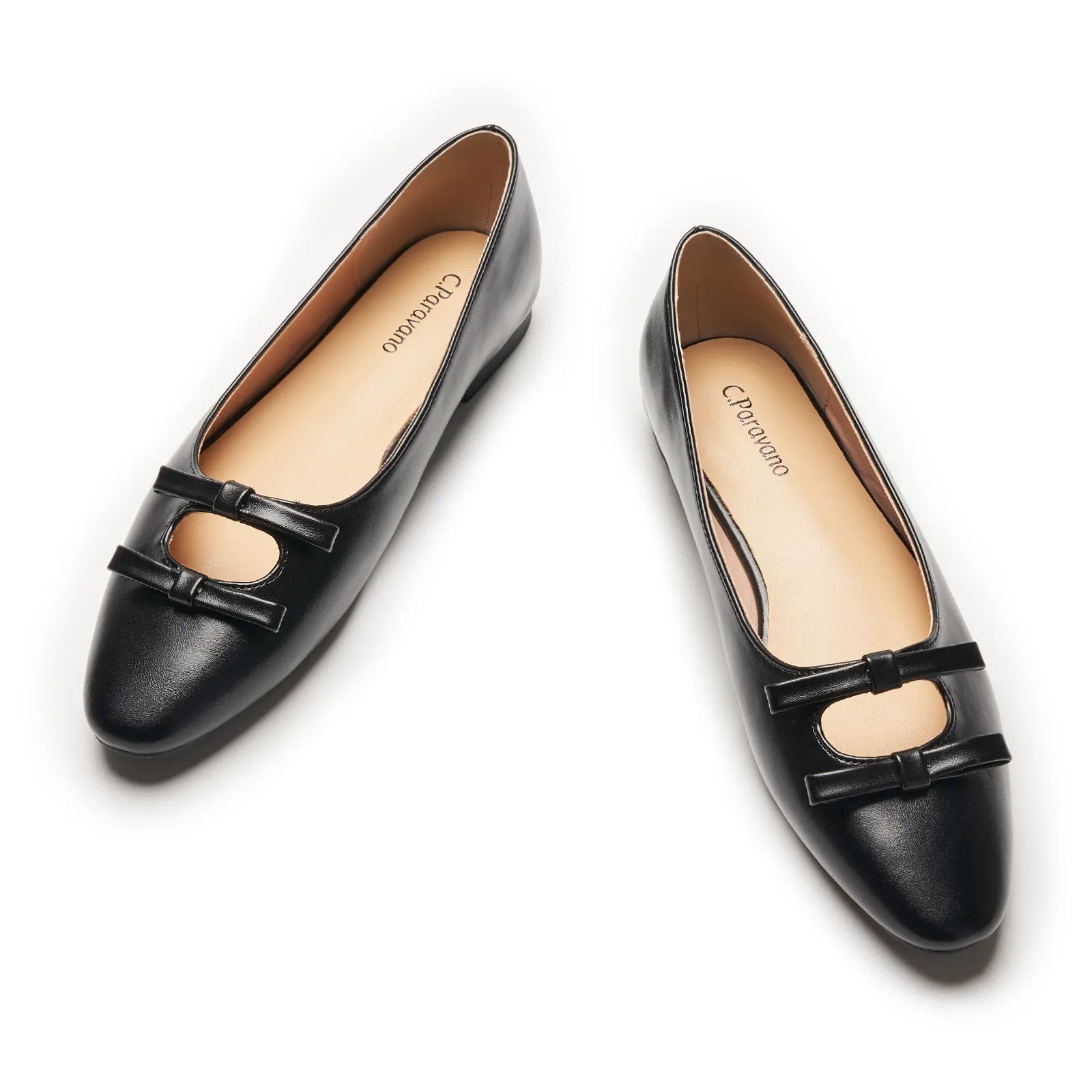 - These ballet flats embody both elegance and comfort. Featuring stylish bow detail on the toe and a unique cutout design, they add a chic touch to any outfit. The cushioned insole ensures all-day comfort, making them perfect for both casual and formal occasions. Walk with confidence and grace in these versatile flats.