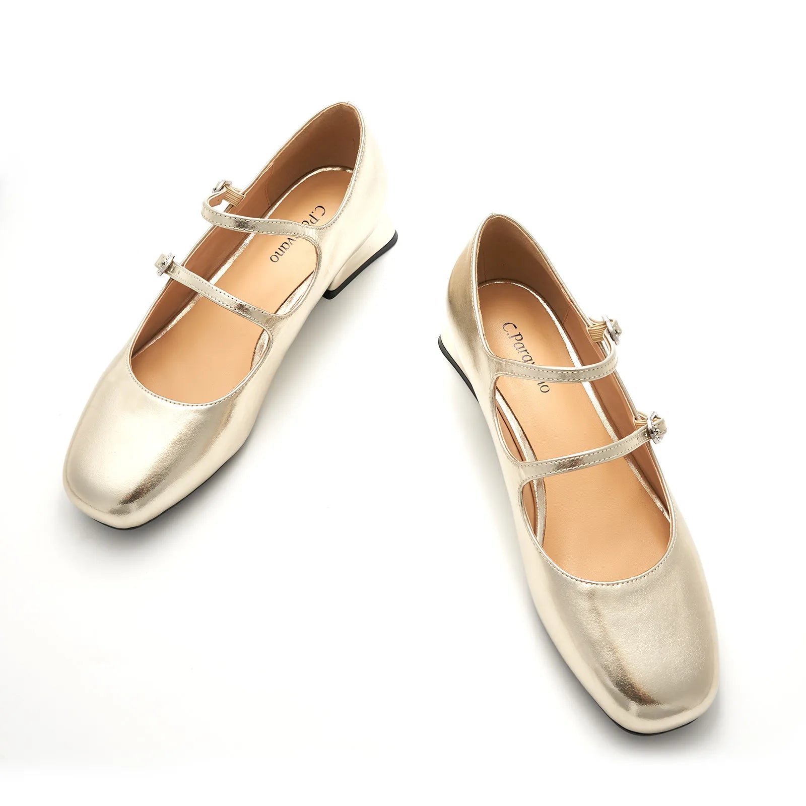 - Step out in elegance with these classic Mary Jane .Crafted from sleek leather, these shoes feature a double straps design with adjustable buckles, offering both style and a secure fit. The rounded toe and low wedge heel provide a timeless, vintage-inspired look, while ensuring comfort for all-day wear. Perfect for formal events, office wear, or casual outings, these shoes effortlessly blend sophistication with practicality.