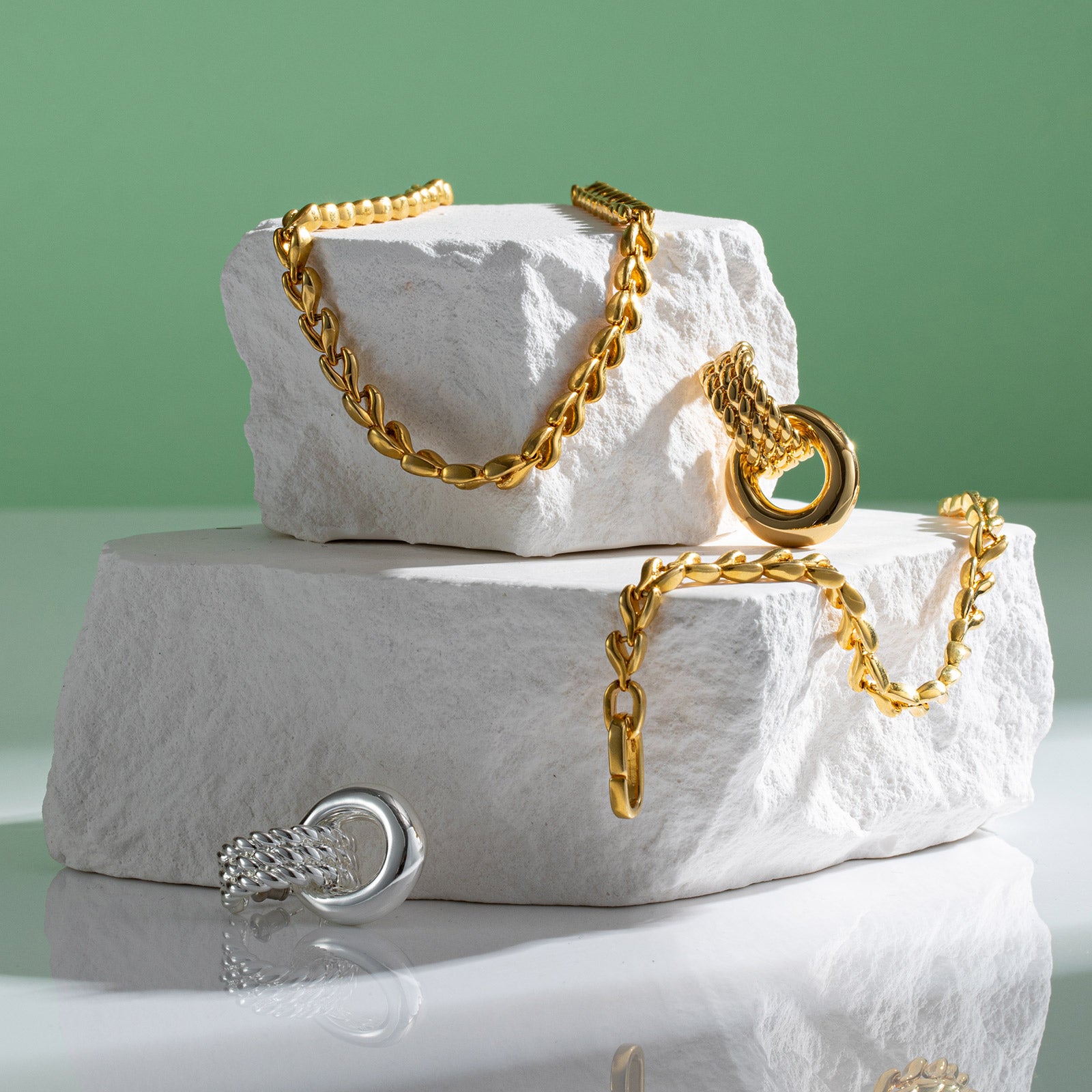 - The Heart Chain Necklace is crafted with solid curb 18kt gold chain links which are individually cast and then welded together, giving it a pleasing sense of weight and creating a smooth, fluid sense of movement.