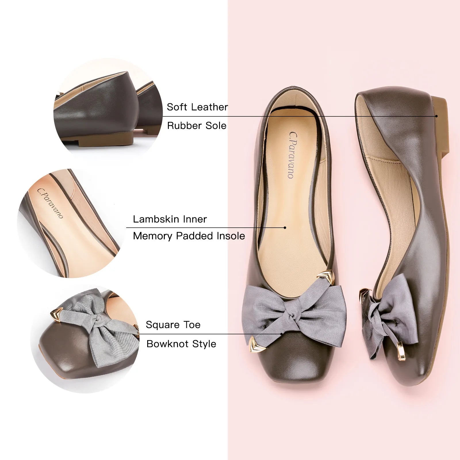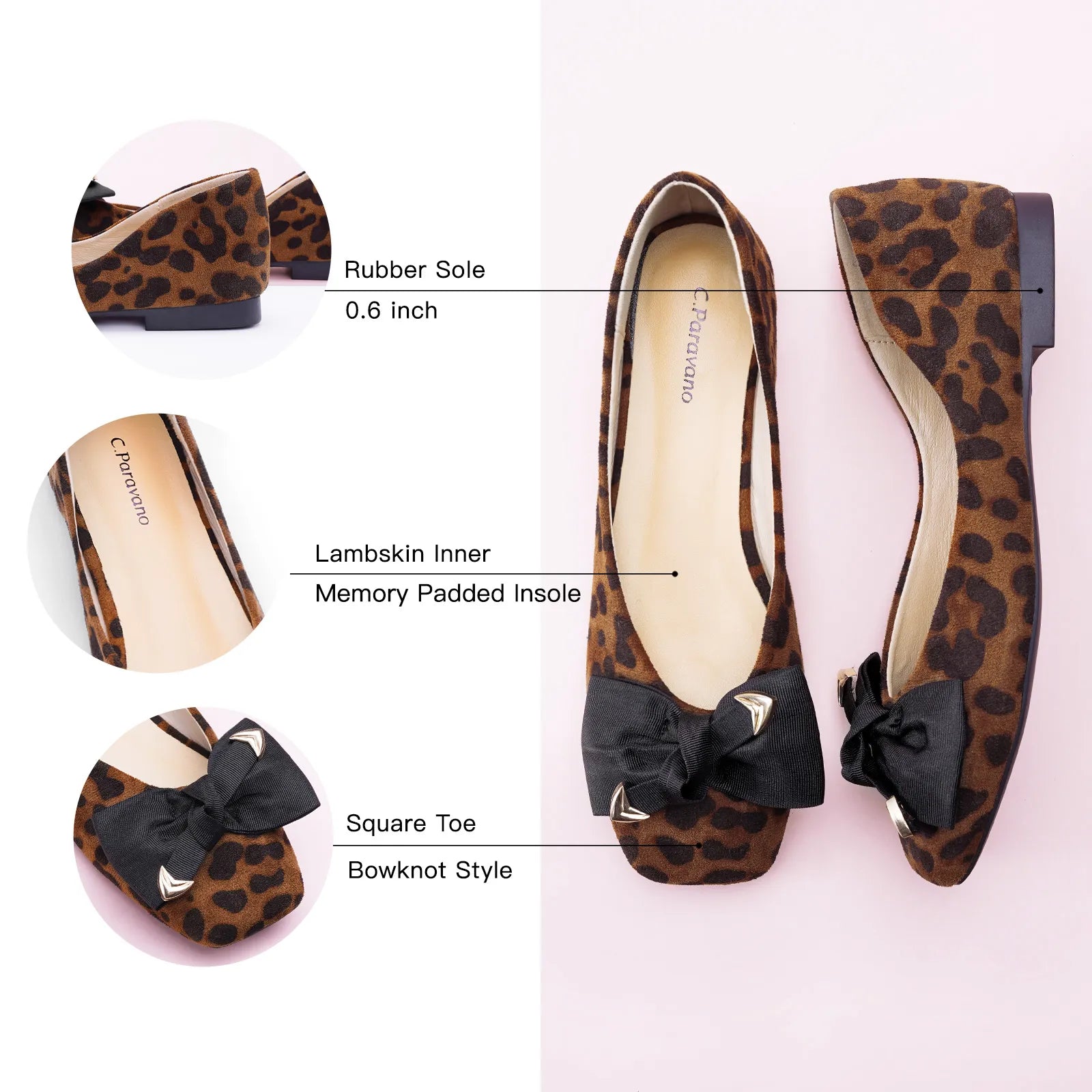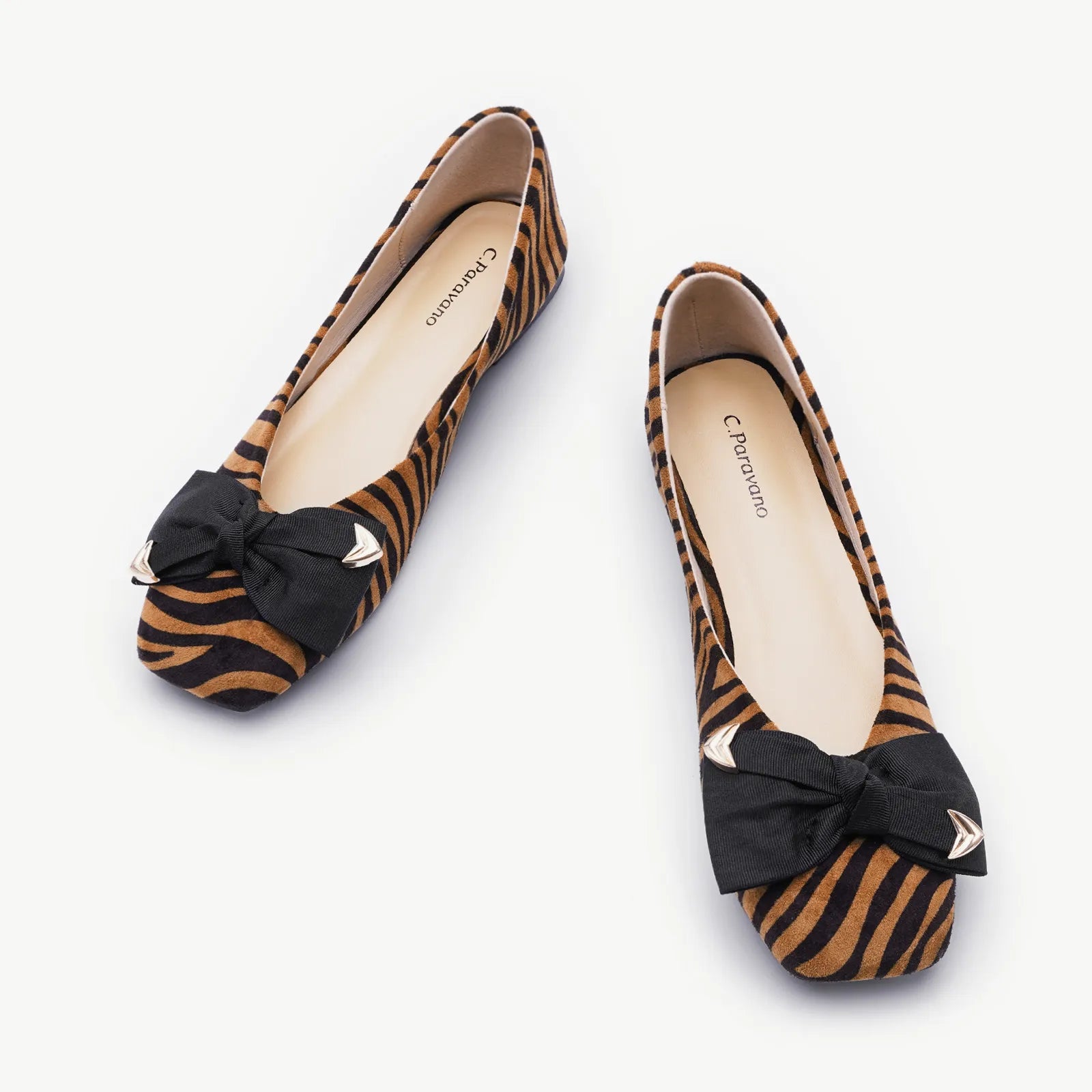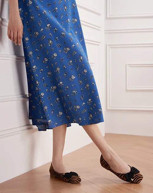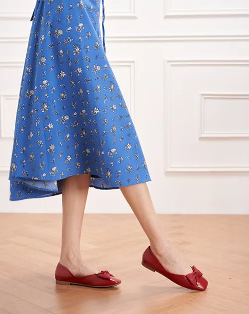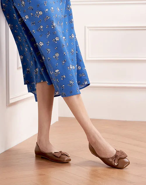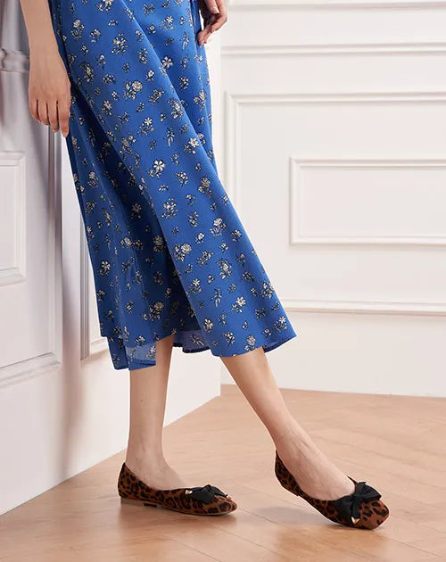 Adorned with metallic details, the classic cloth bowknot infuses this pair with a more sophisticated style, exuding the allure of an elegant woman.The square toe offers optimal toe comfort. With a soft matte leather / textured animal finish and a grippy sole adorned with iconic prints, it exudes understated elegance and nobility.