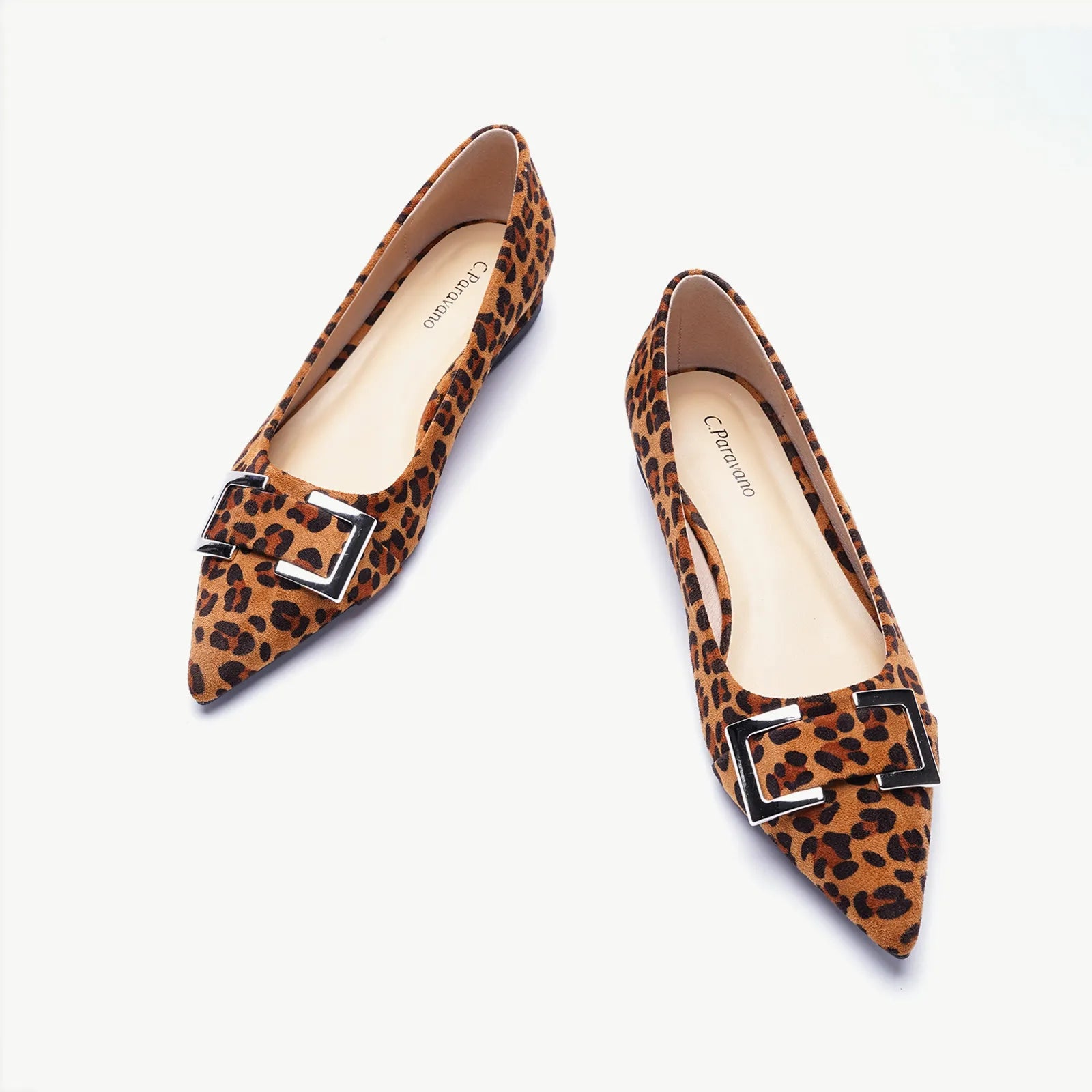 Upgrade your style with these elegant point-toe flats. Enhanced by an sleek finish and a grippy sole adorned with iconic prints, this sophisticated pair steals the spotlight with its gleaming rectangle metal buckle. Yet, the patent leather ensures they're unique enough for any occasion, from casual days to dressier evenings.