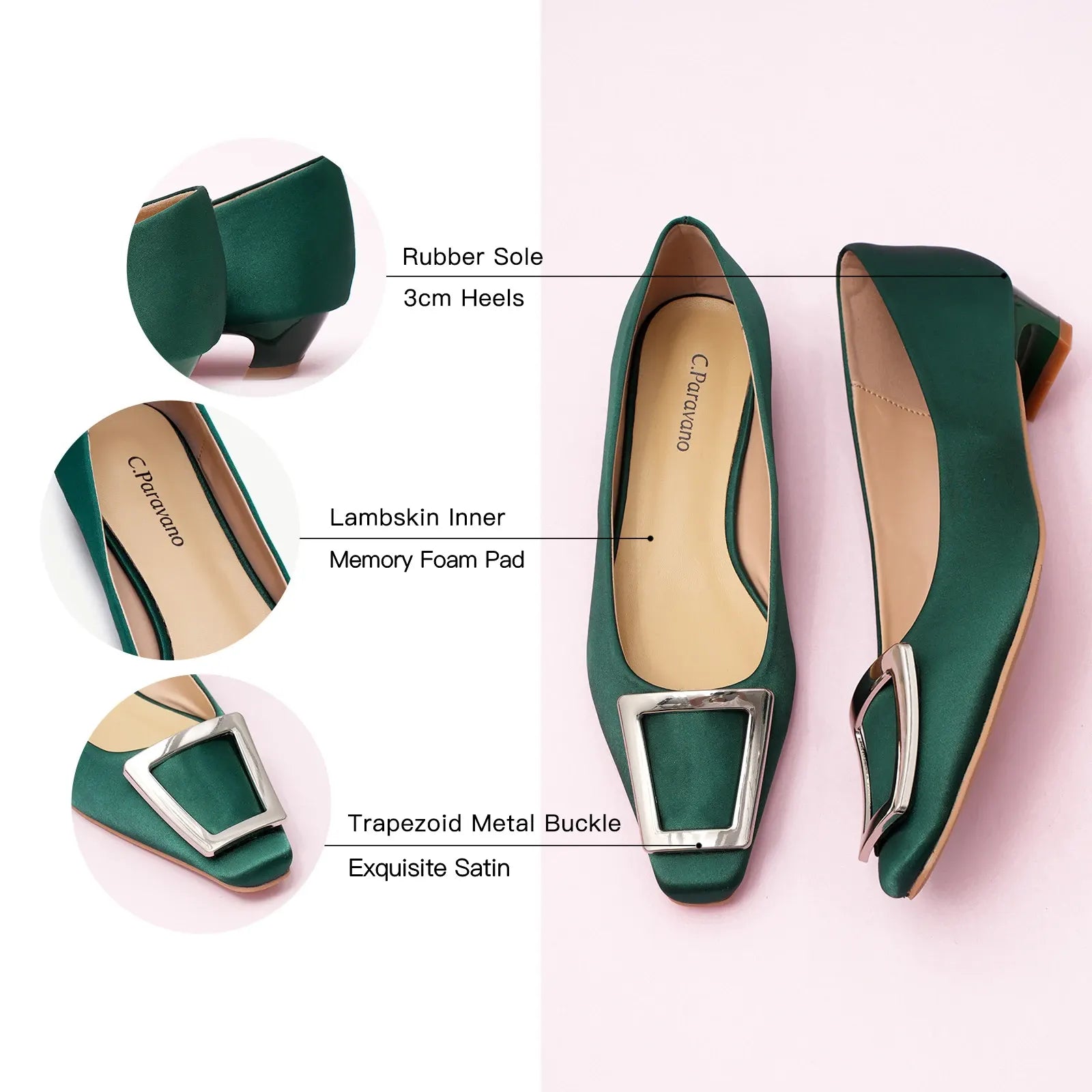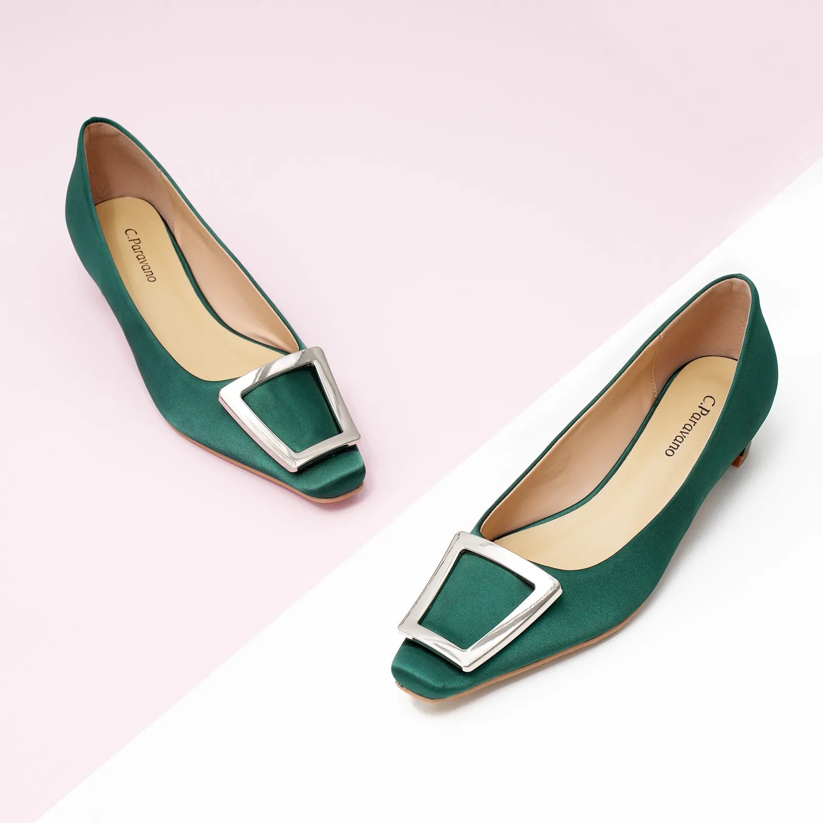- These textured flats will instantly set you apart from the crowd! The satin fabric offers a luxury vibe, while the glossy metal buckle adds a touch of exquisite. Complete with square-toe design and breathable memory foam insole, this pair offers enough space while prioritising comfort for long hours of wear.