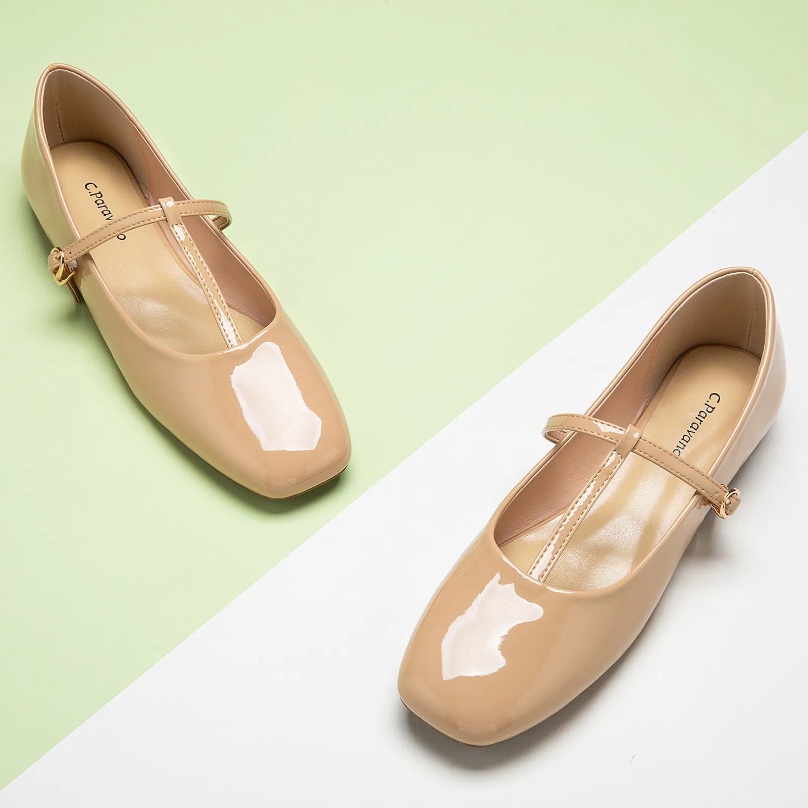 - Featuring a glossy patent finish,the T-bar strap adds a unique flair, providing both a secure fit and a fashionable touch. Ideal for any occasion, this Mary Jane effortlessly combines elegance with practicality.