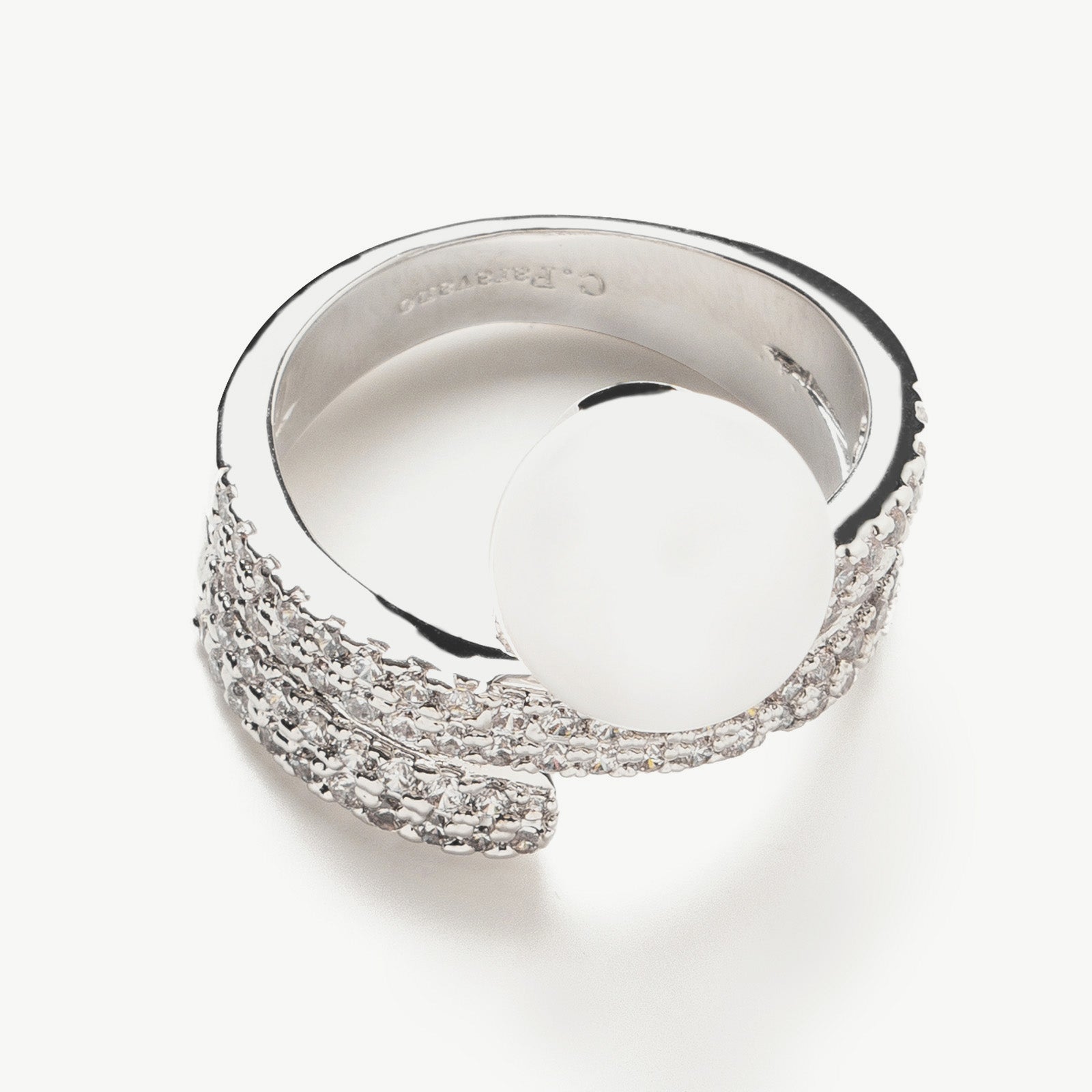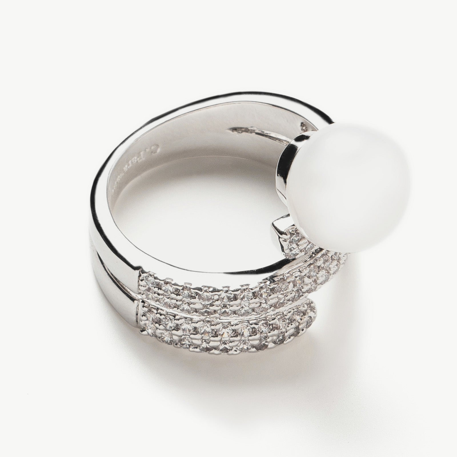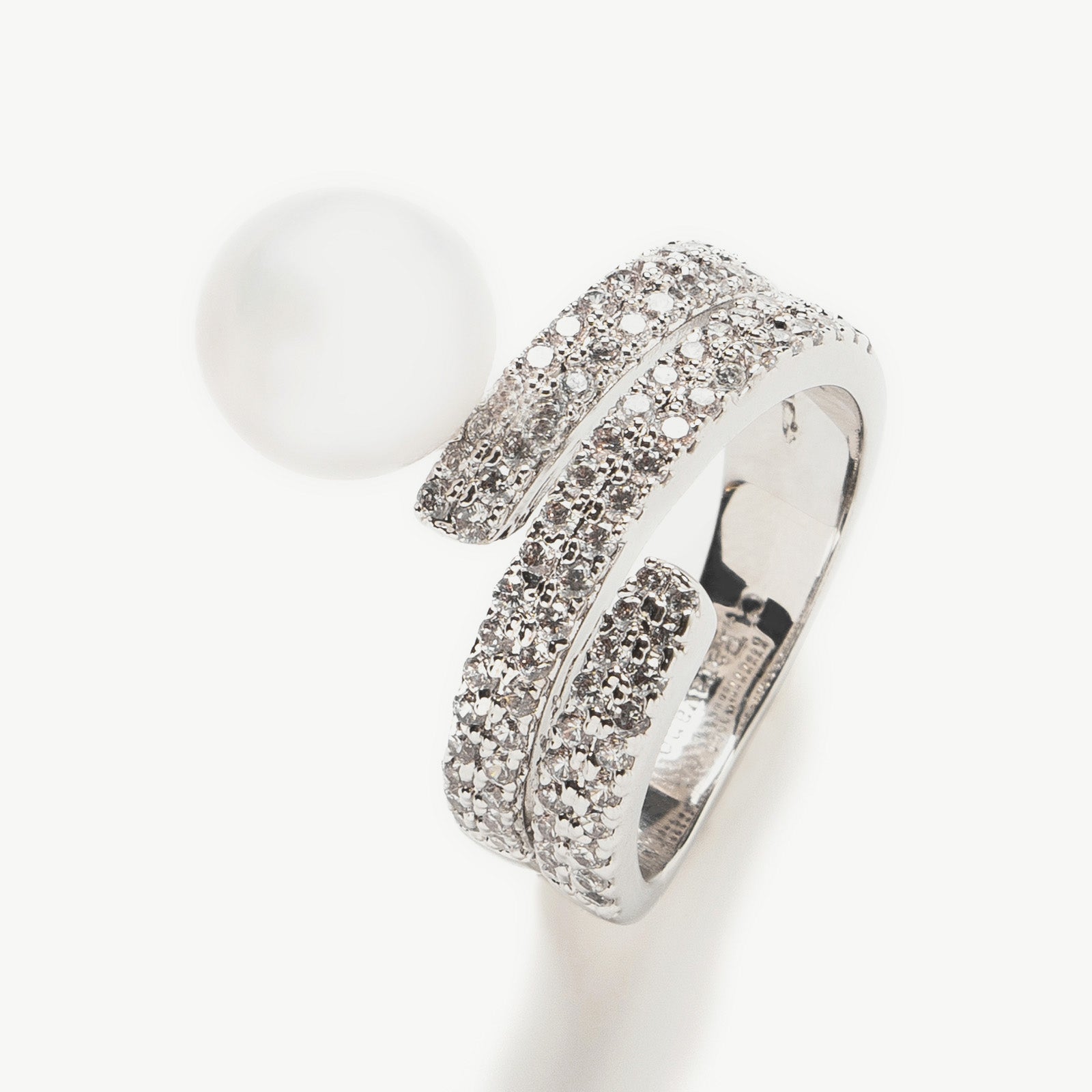 - Elevate your style with the timeless allure of our Pearl Bypass Ring. This exquisite piece seamlessly marries classic sophistication with contemporary design, creating a look that's as unique as it is refined.