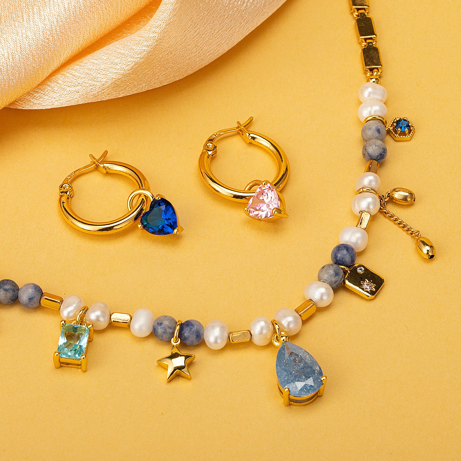 - Elegant artistry inspires these earrings, which showcase dainty drops of bezel-set heart gemstone. Pink Heart Drop Earrings are handcrafted from hammered 18kt gold to achieve a textured finish, then finished with a clicker fastening.