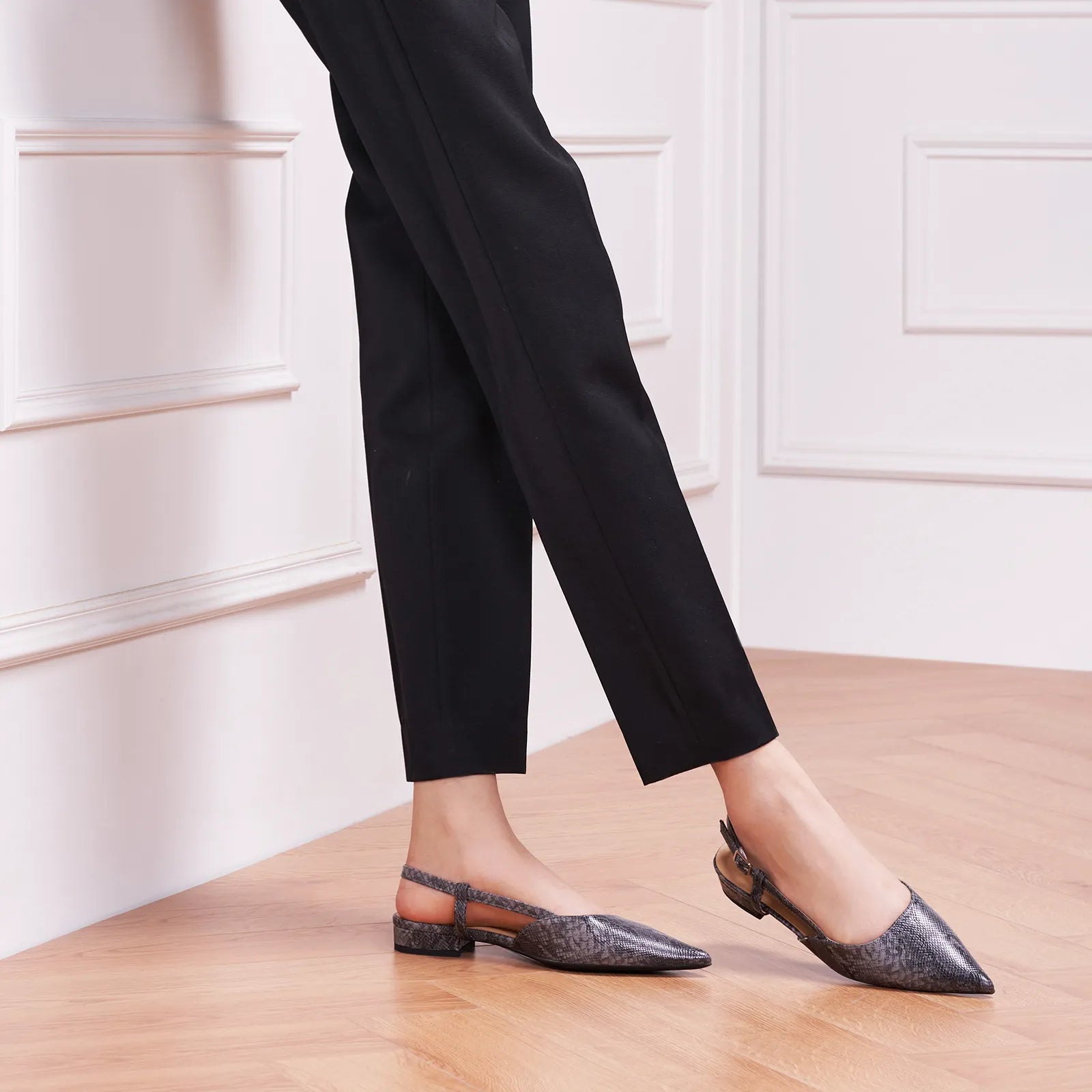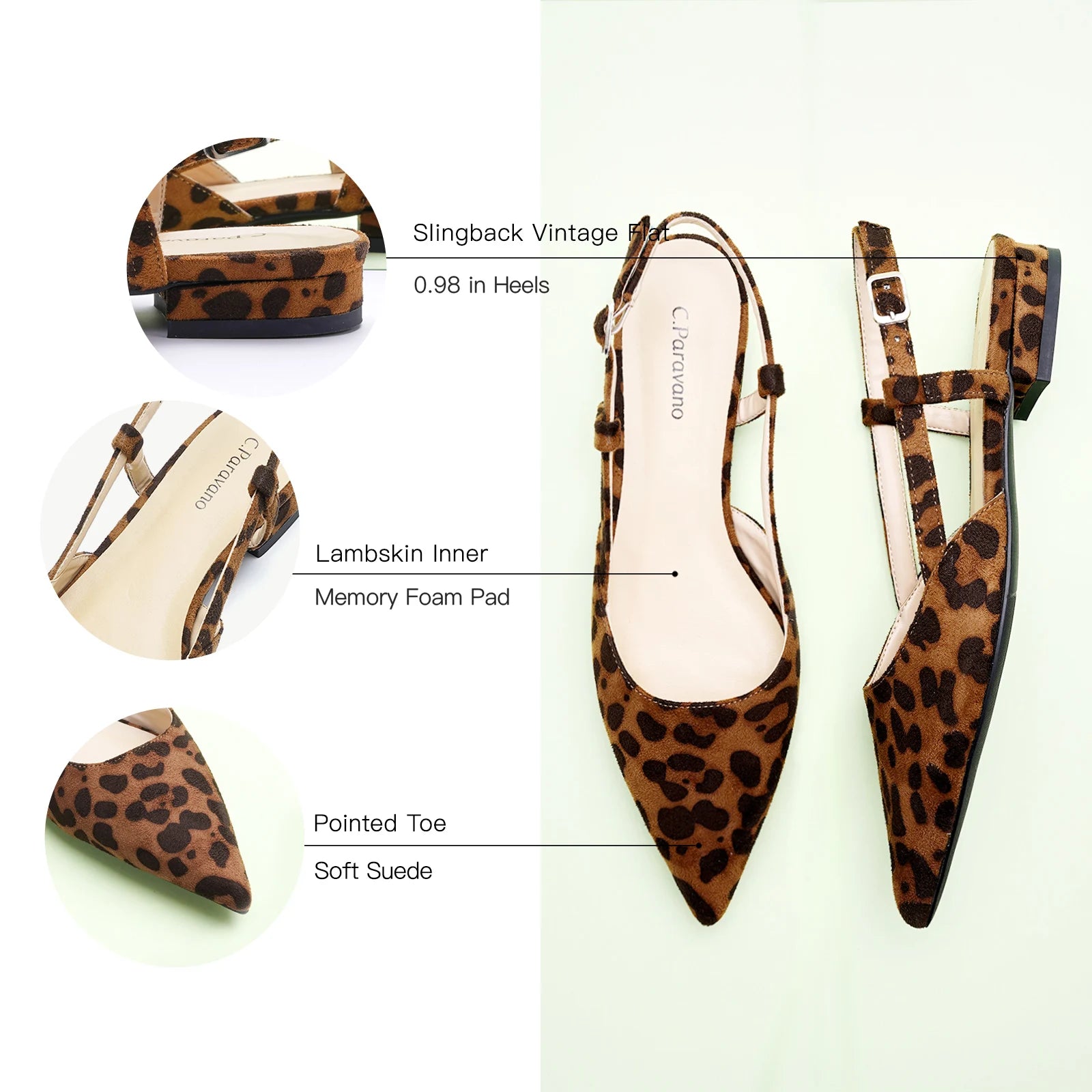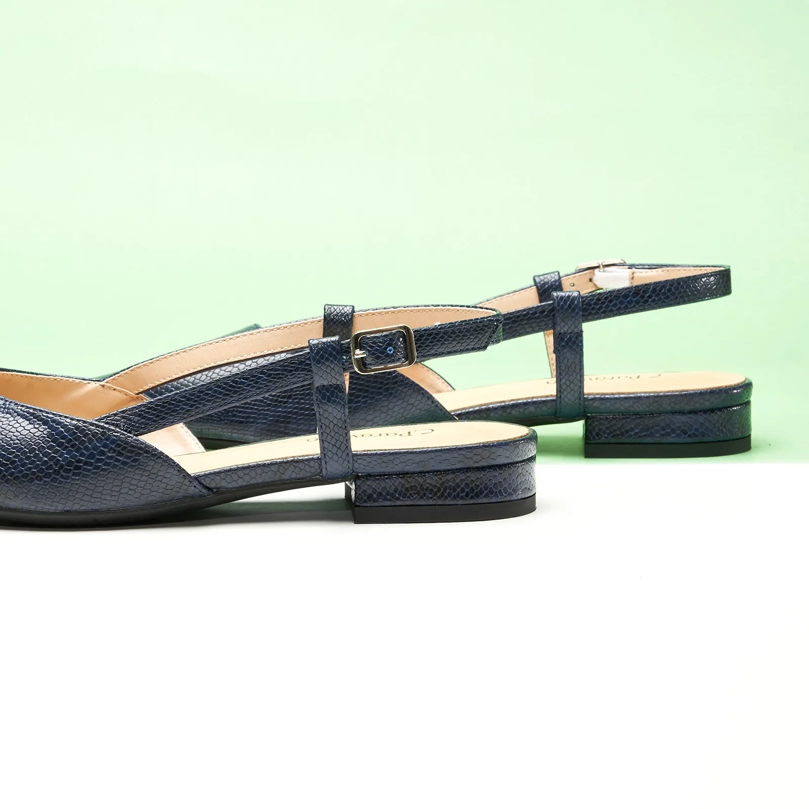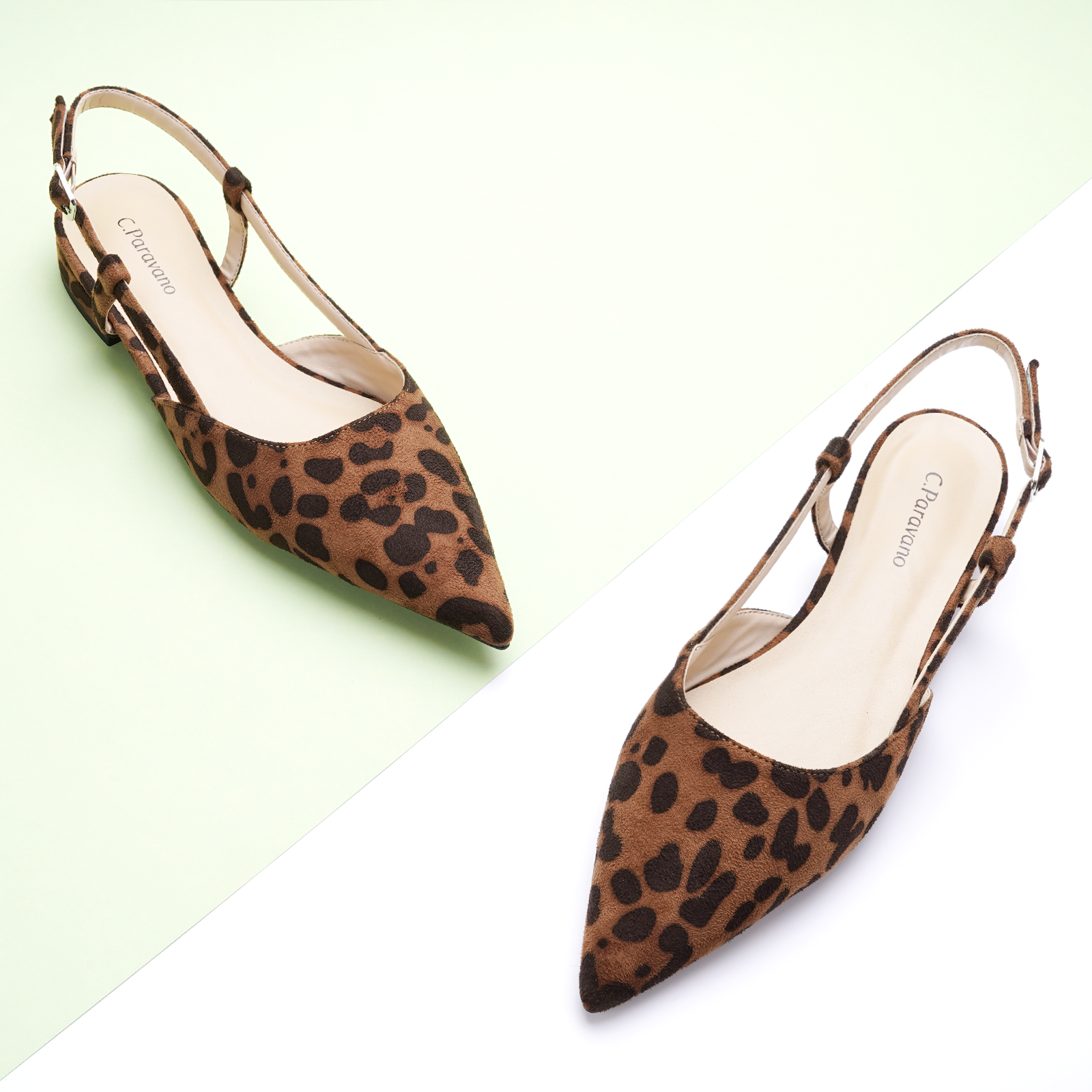 - Crafted from brand-new animal prints, this pair is a flat pointed-toe slingback with a 2.5cm block heel. The exquisite finish makes the shoes look very textured. The adjustable strap and buckle allows for a wider fit.