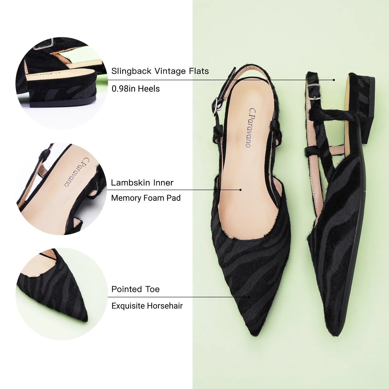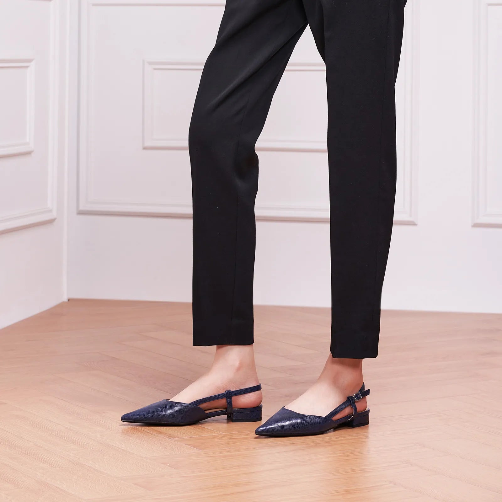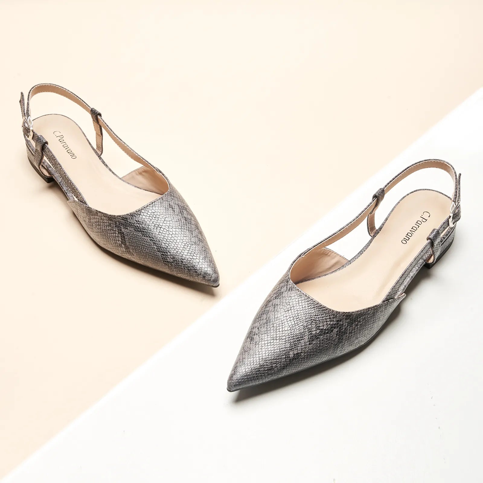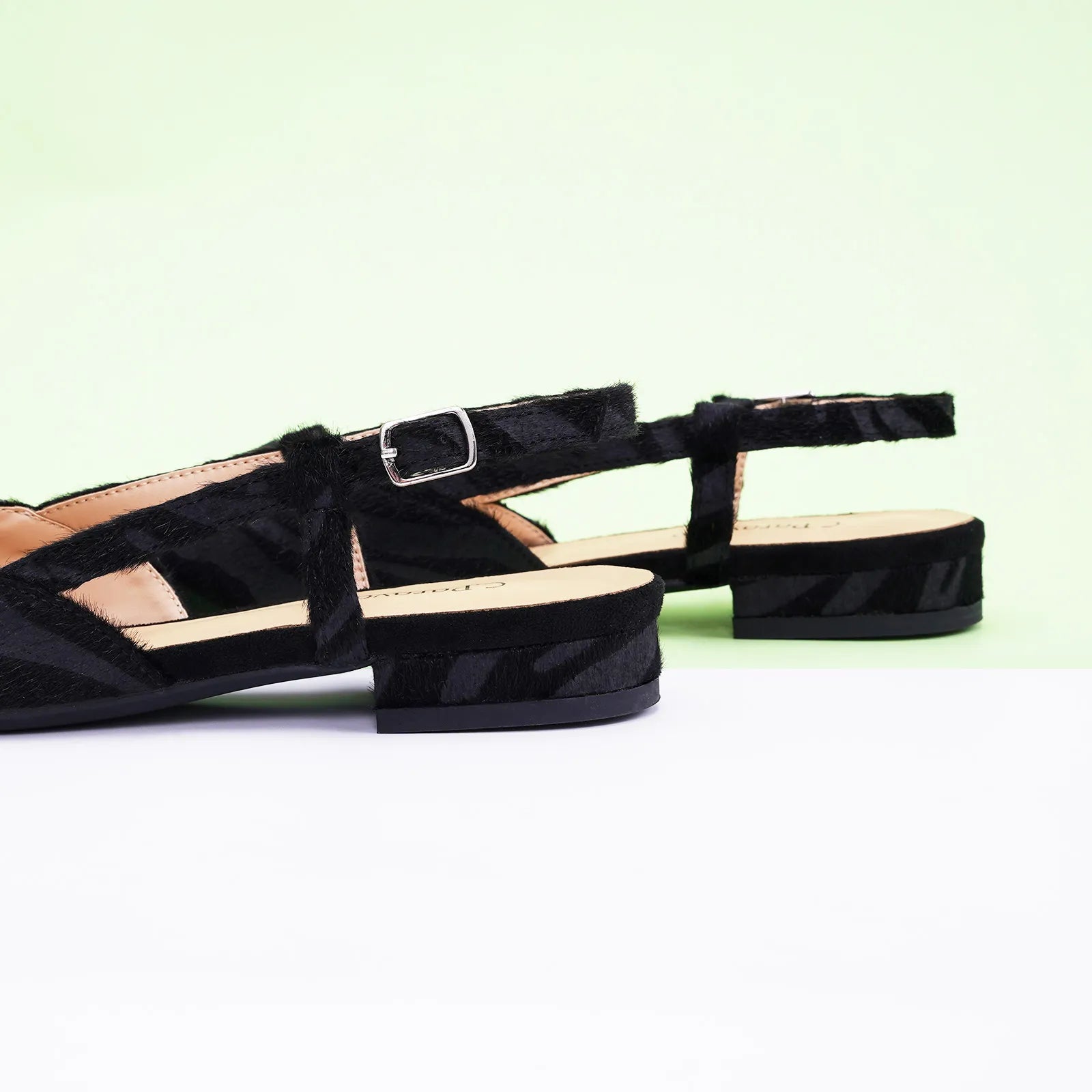 - Crafted from brand-new animal prints, this pair is a flat pointed-toe slingback with a 2.5cm block heel. The exquisite finish makes the shoes look very textured. The adjustable strap and buckle allows for a wider fit.