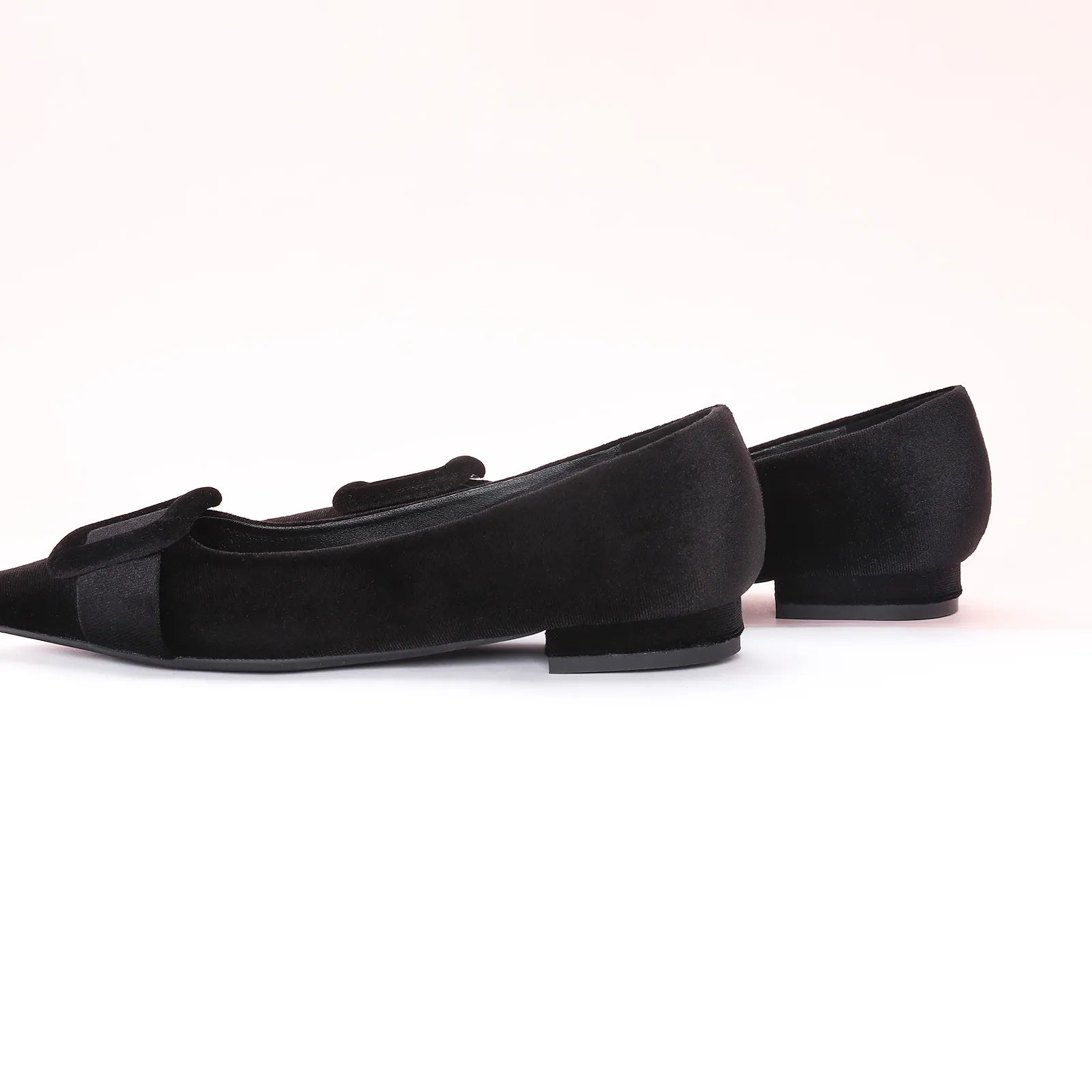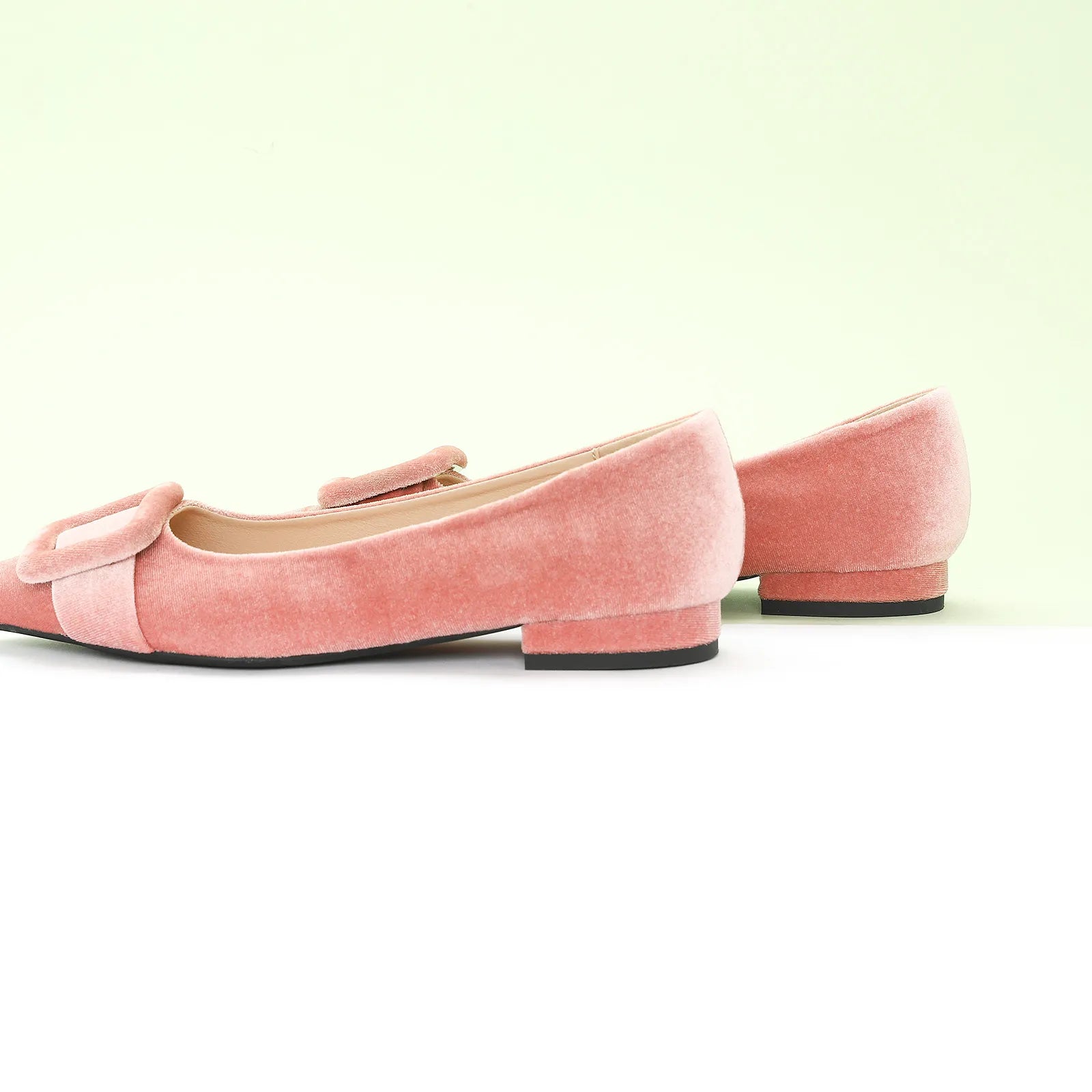 These pointed-toe flats are unlike any other. They offer a touch of exquisite elegance, thanks to the luxurious velvet finish and the grippy sole adorned with iconic prints. The eye-catching buckle, coupled with textured finish, adds stylish tactility to your outfit. Let them serve as the foundation of your daily wardrobe!