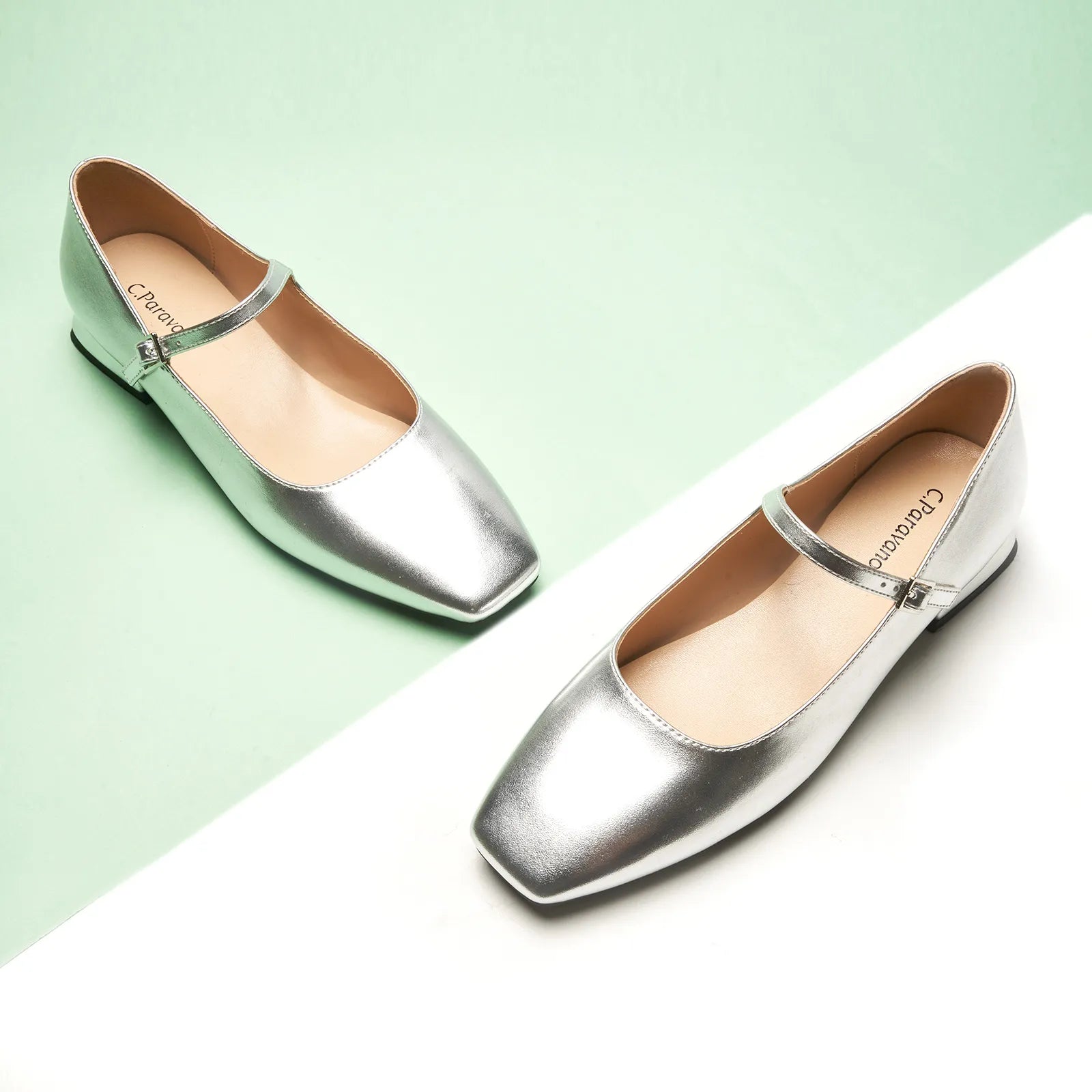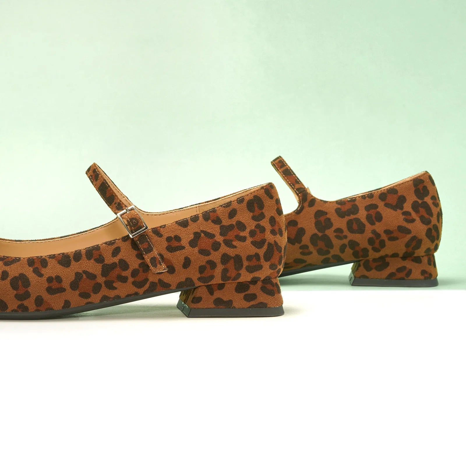 - Step into timeless elegance with these classic Mary Jane flats.Crafted with a sleek, minimalist design, they feature a smooth finish that adds a touch of sophistication to any outfit.The delicate buckle strap ensures a secure fit, while the almond-toe silhouette offers both comfort and style. Available in leopard prints and solid colors, these Mary Janes seamlessly blend versatility with chic appeal, perfect for both daily wear and special occasions.