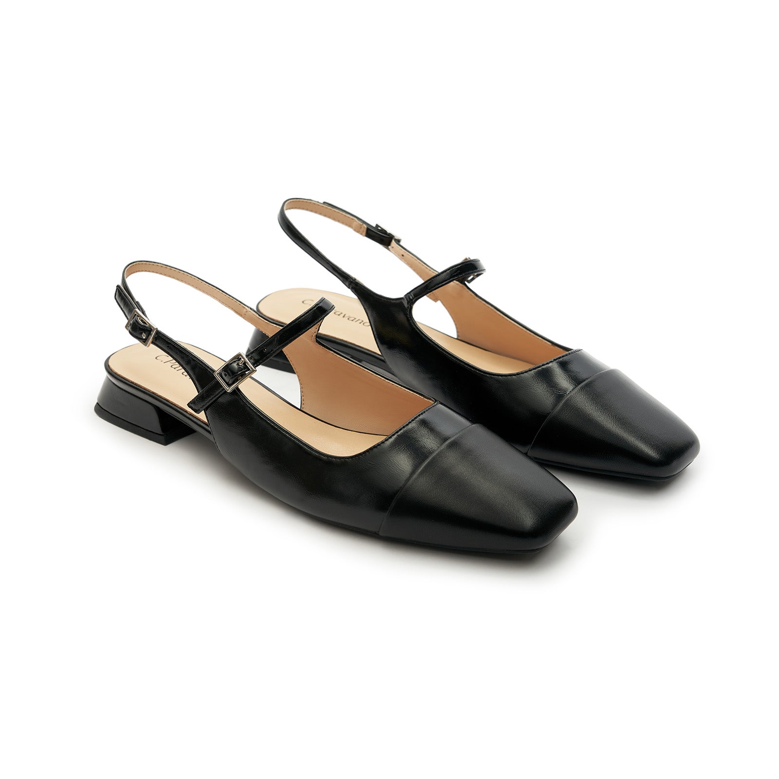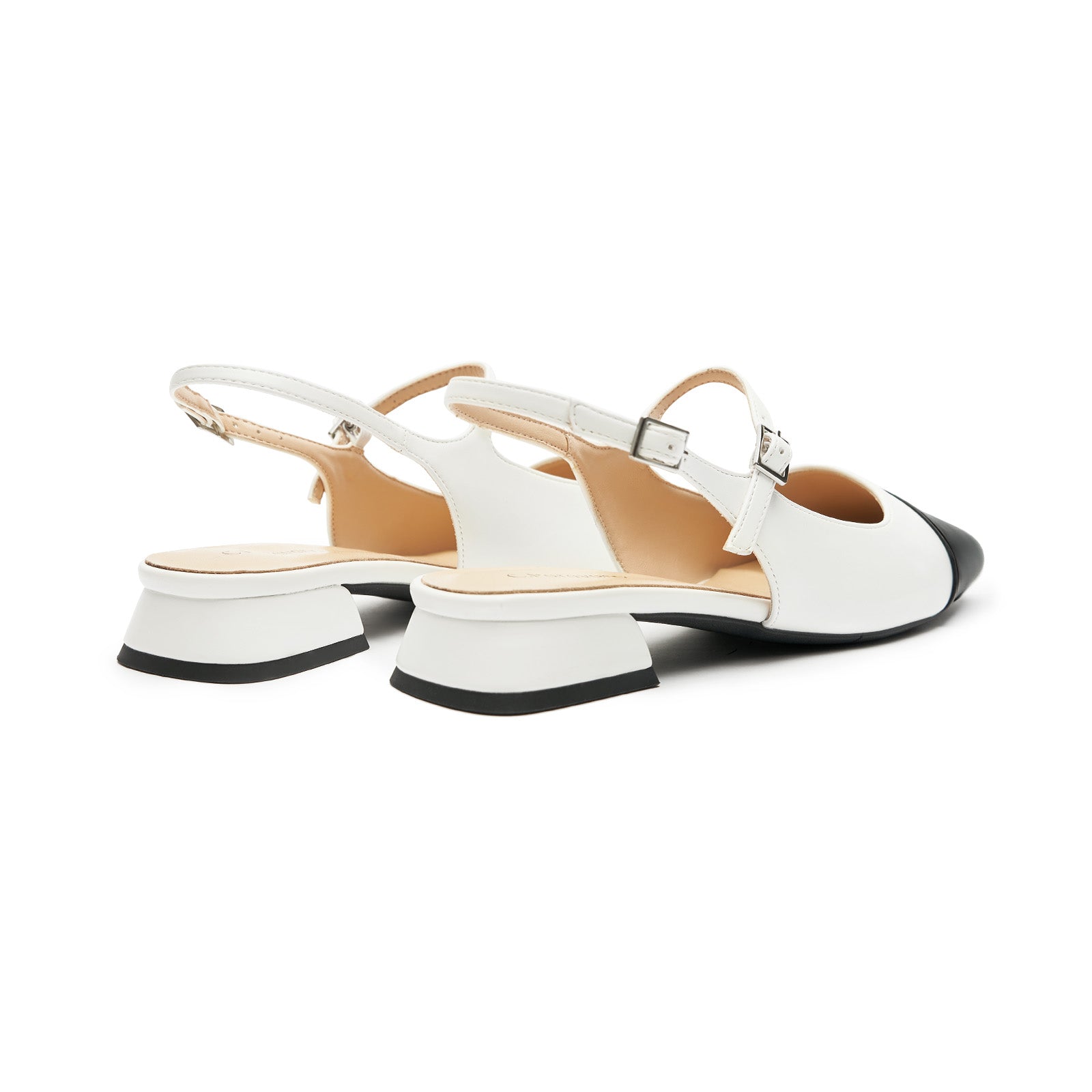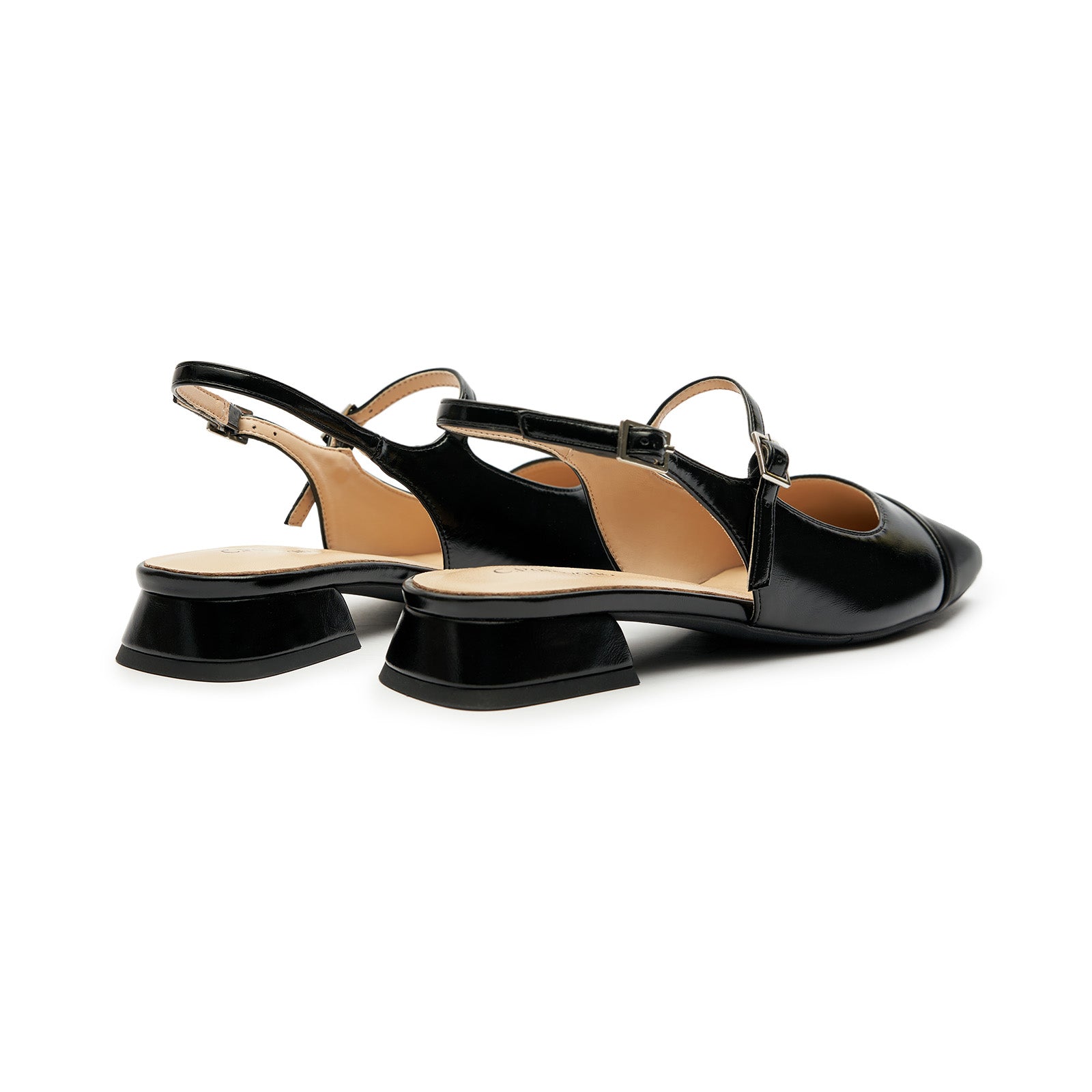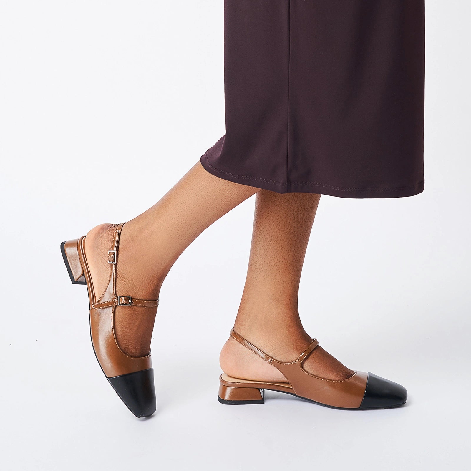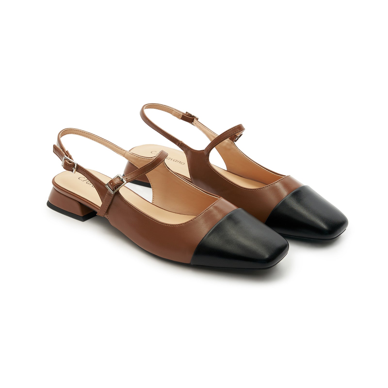 - These slingbacks adopt a square toe design, which is more accommodating to different foot shapes. The splicing design of the toe and the shoe body presents a structuralist aesthetic. The adjustable strap and buckle allows for a wider fit.