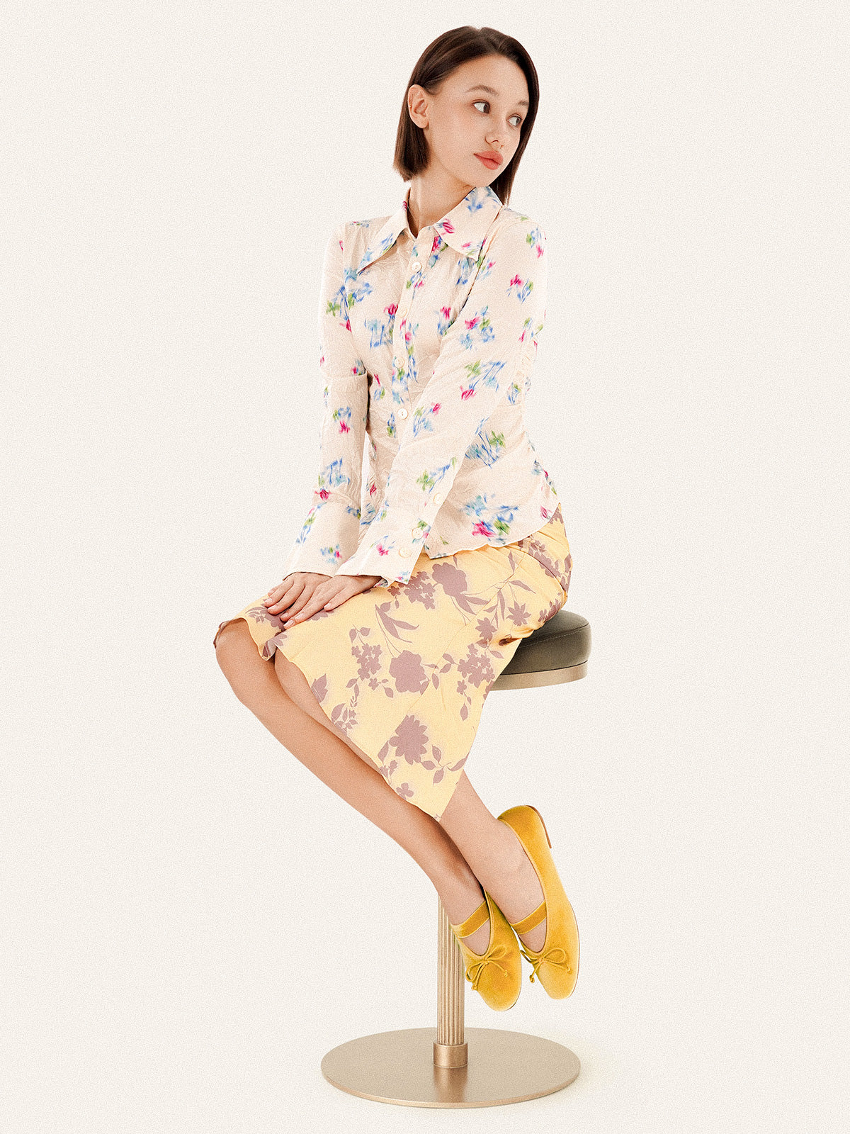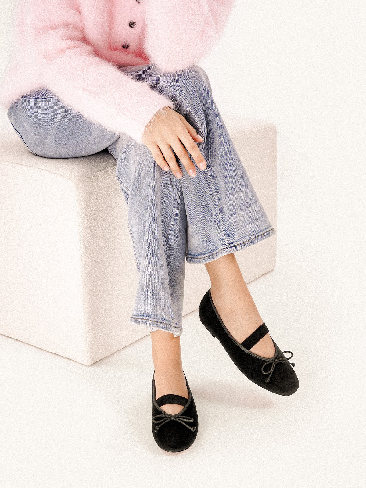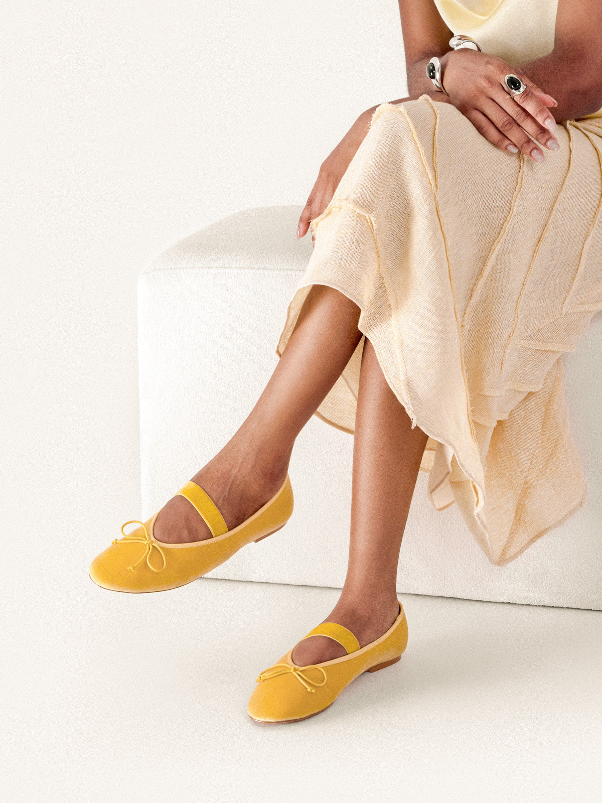 This Almond-Toe ballet flat blends softness with sophistication. The delicate knot detail paired with an elastic band creates both charm and ease of wear. Subtle elegance and everyday comfort come together in a timeless design.