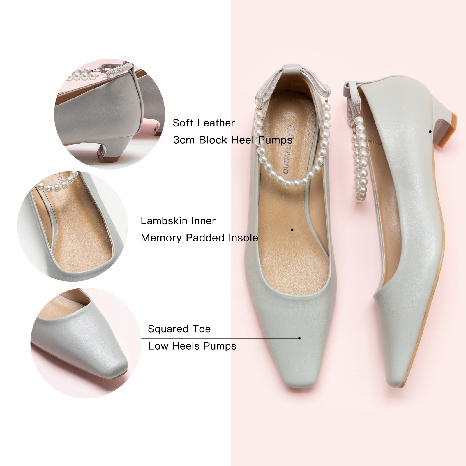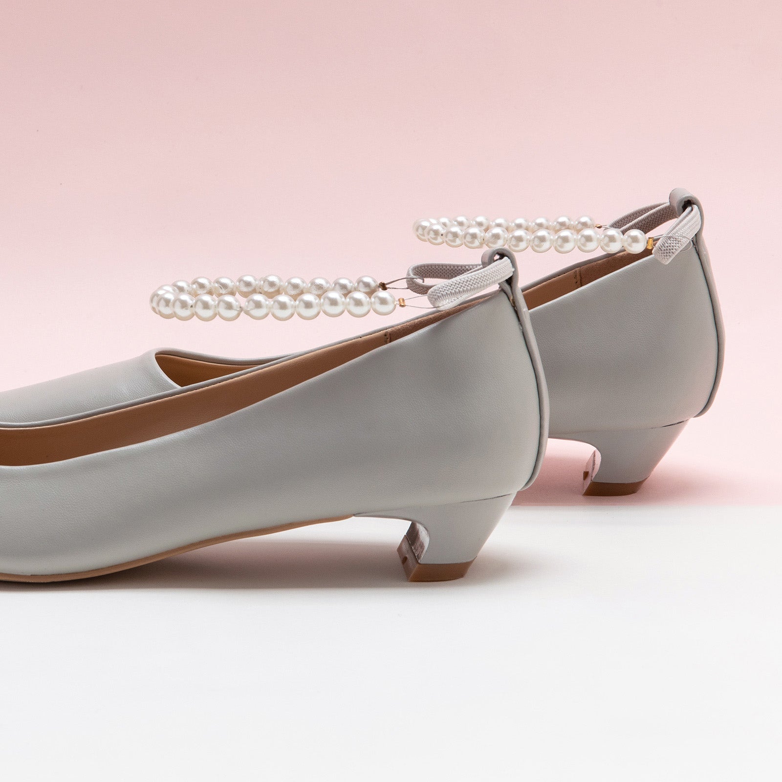 - Achieve the refined lady aesthetic with these exquisite low heels. Featuring a chic square-toed design and kitten heel, this pair is perfect for special occasions, dinner dates and even weddings. Bonus points go to the pearl chain strap at the ankle that adds subtle shine and elegant vibe for any outfit.