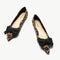 - Grace your wardrobe with these matte pointed-toe flats. Fitting leather construction enhances the fit, and a grippy sole adorned with iconic prints ensure non-slip and wear resistance. Offset by a large cloth bow at the vamp, these flats capture attention with every step, striking the perfect balance between casual and elegant style.