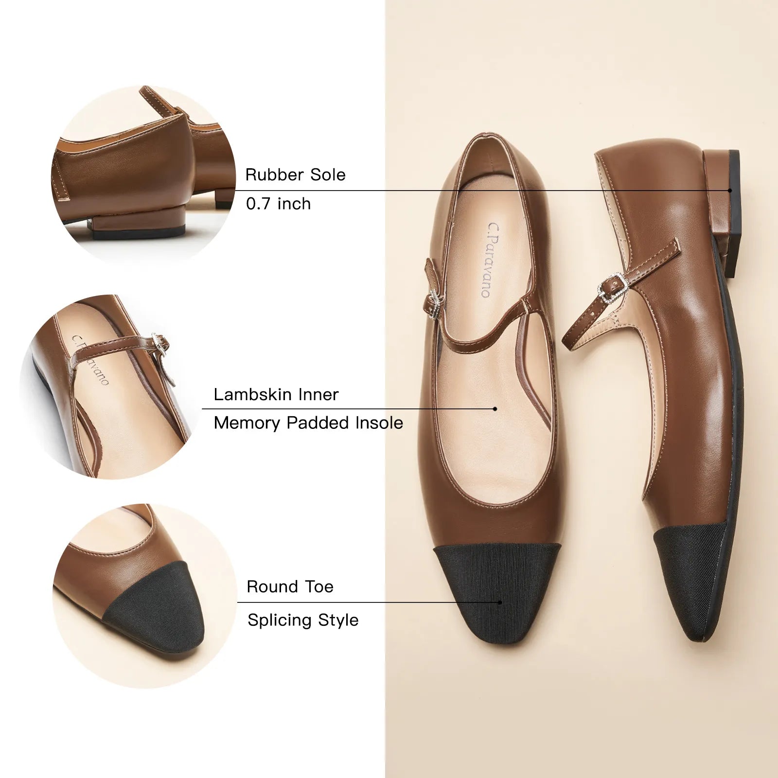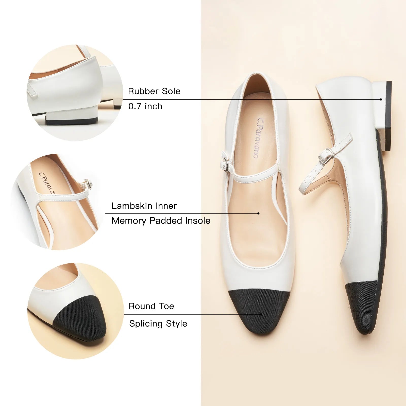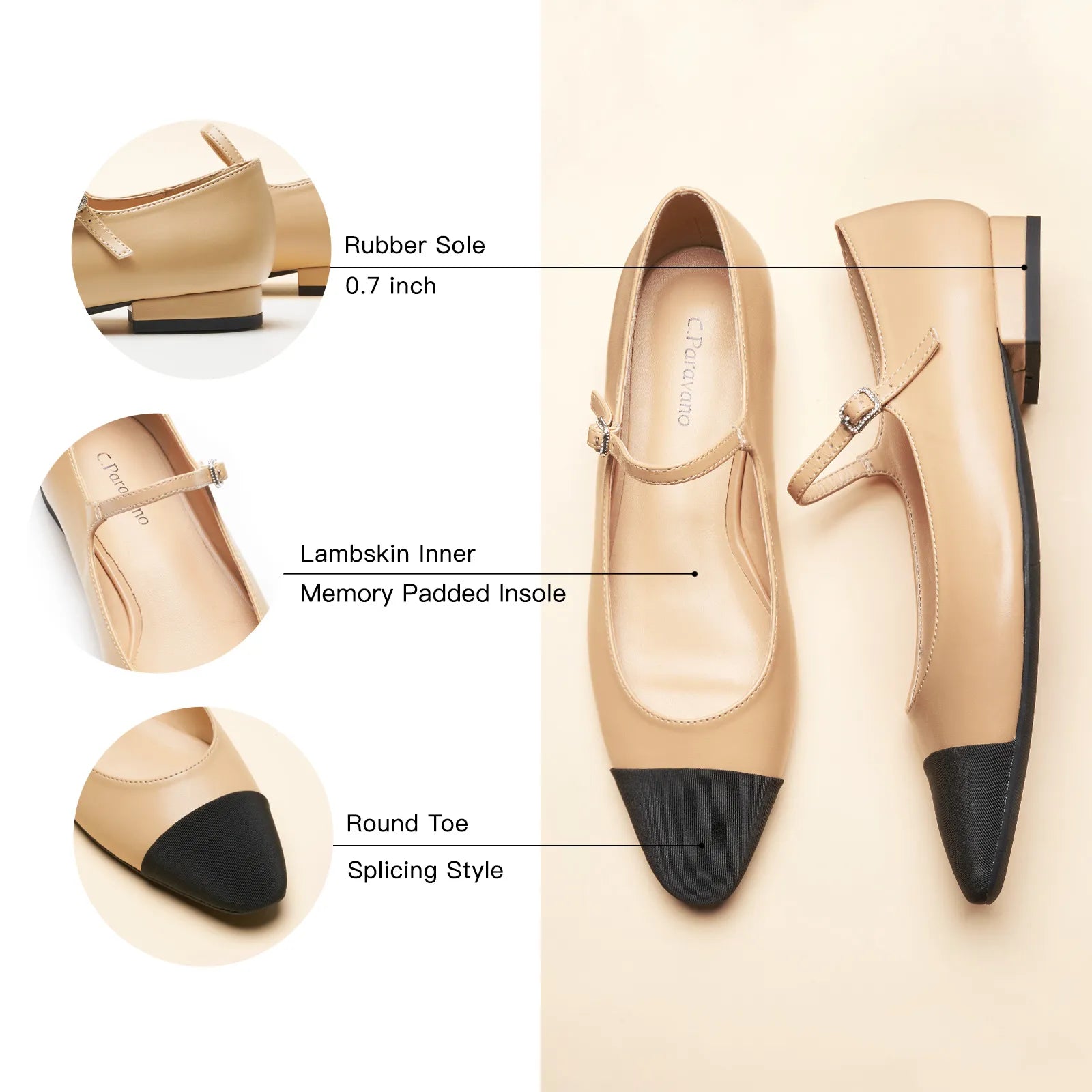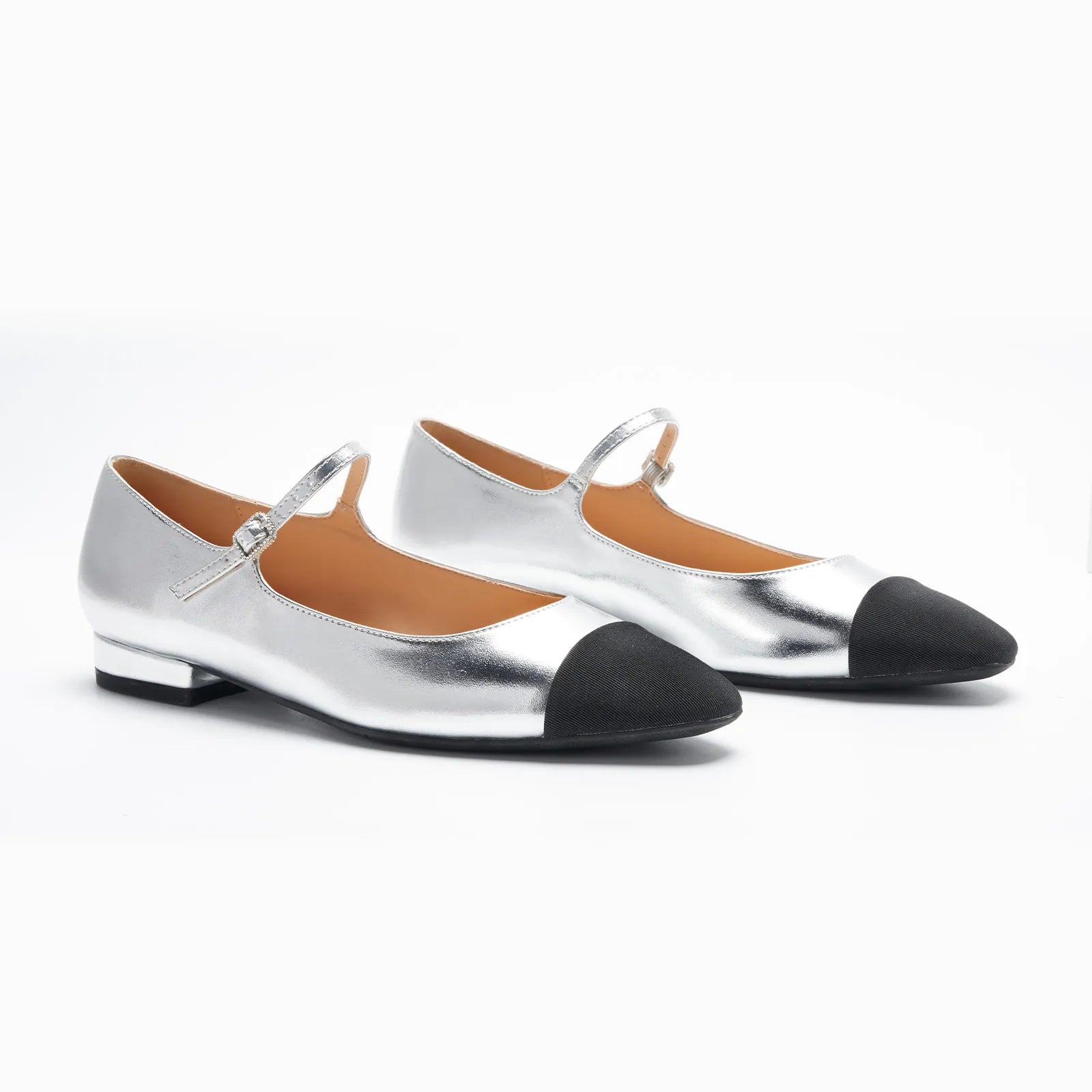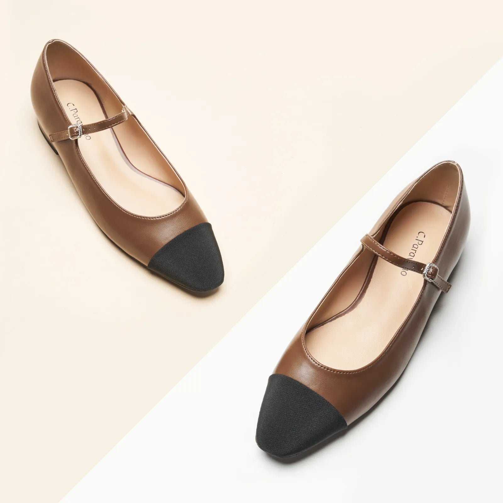 Add a little sparkle to ordinary days with these mary jane flats. This pair features supersoft leather and contrasting cloth toe caps for a distinctive two-tone colourway. The almond-toe design keeps these shoes looking classy and elegant. Fitteed with memory foam pad that offer comfy arch support, these shoes are comfortable enough for all-day wear.