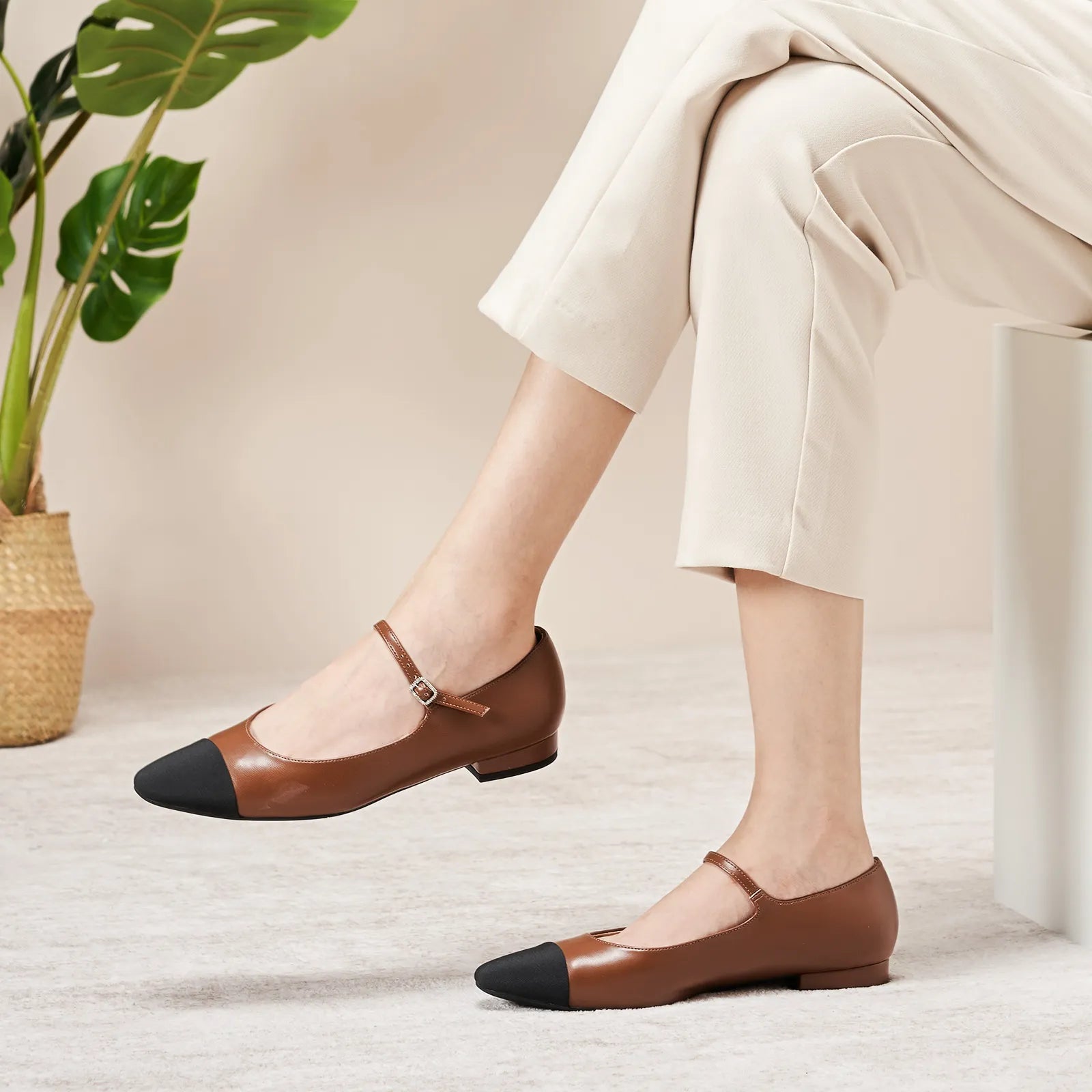 Almond-Toe Two-Tone Mary Jane (Lena)(SALE)