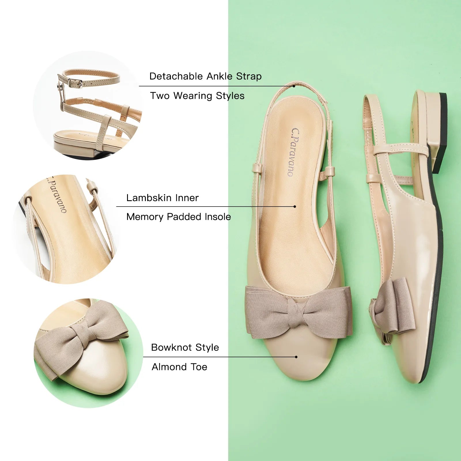 - The mary janes feature a versatile detachable ankle strap, offering two wearing styles.They have a lambskin inner lining for comfort, a memory-padded insole, and an almond toe design with a stylish bowknot accent.The minimalist style ensures versatility, easily pairing with various outfits from casual to formal.