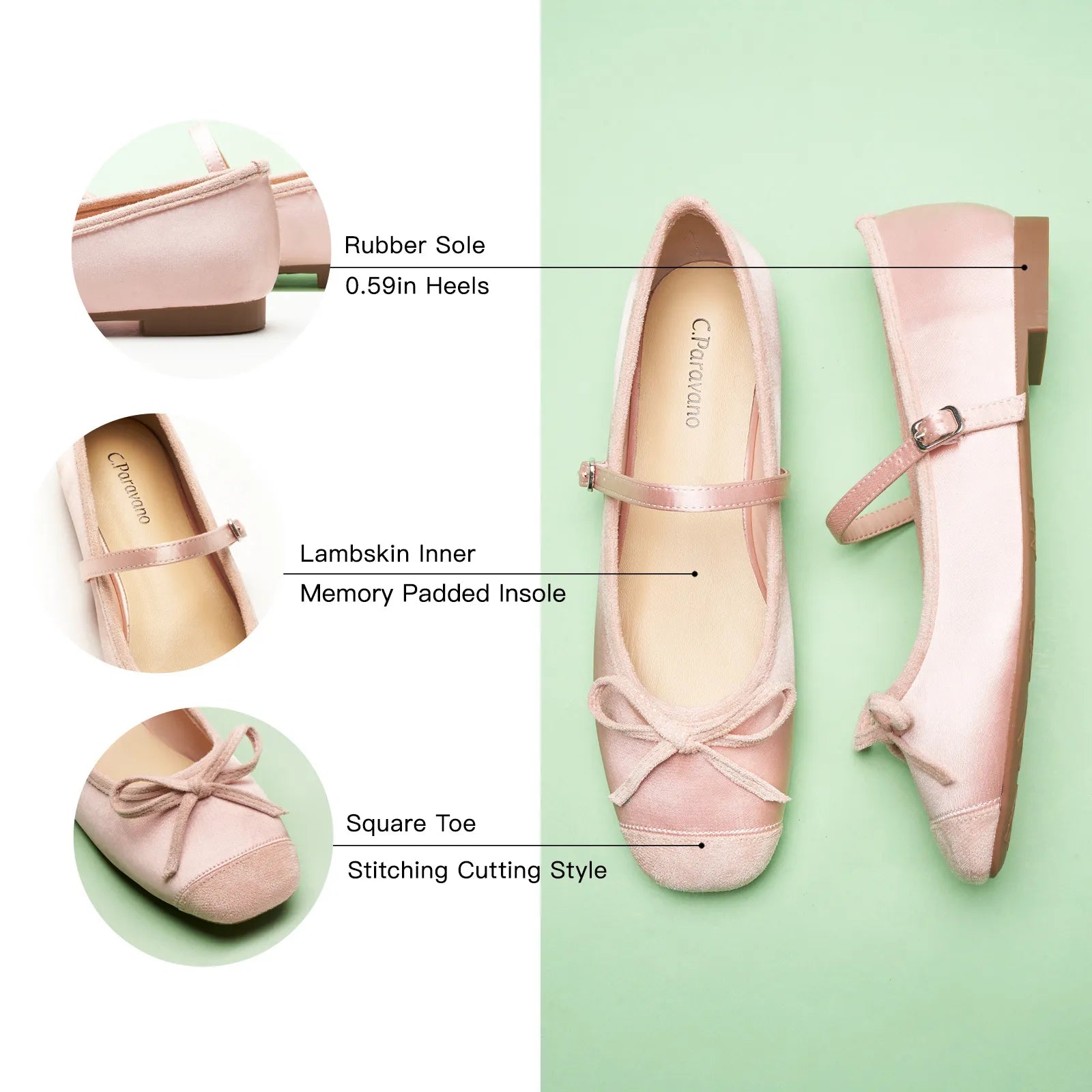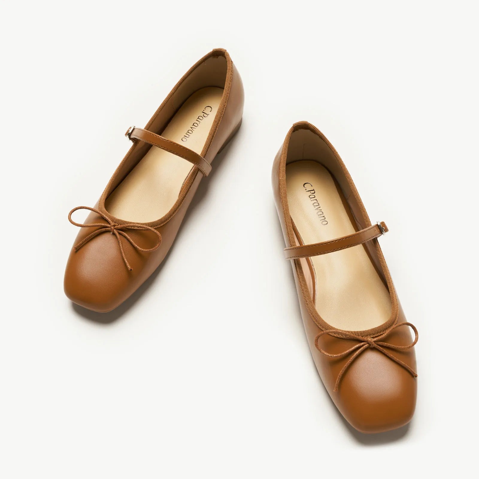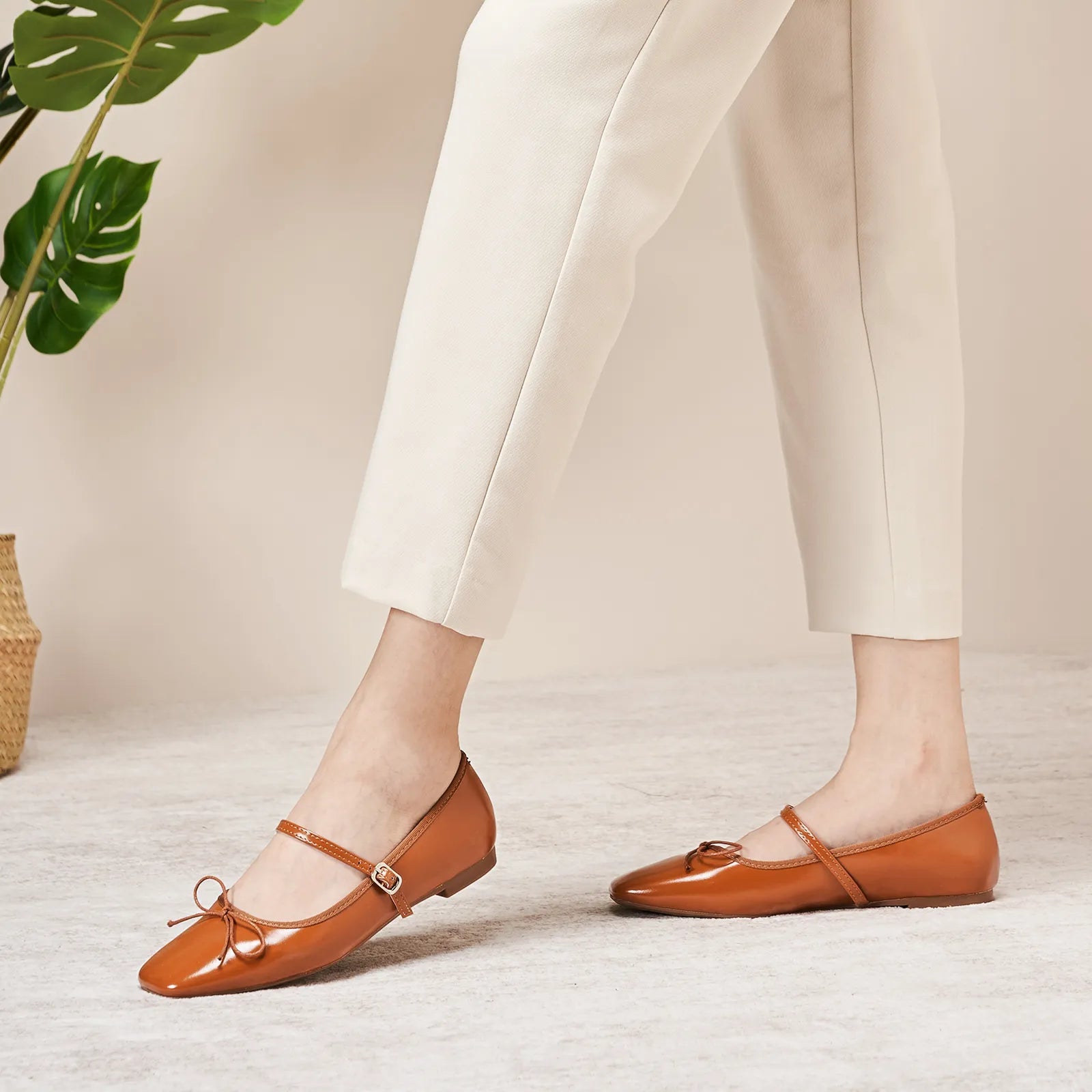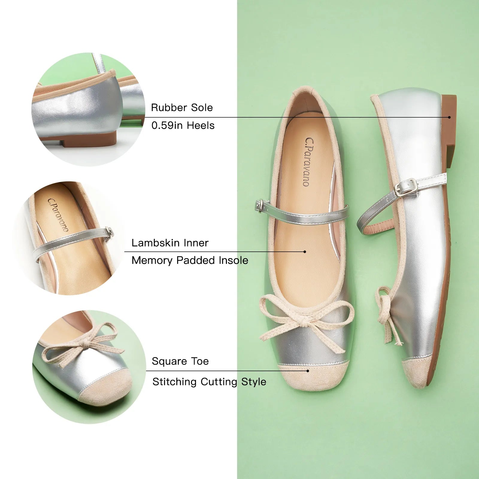 Inspired by classic ballet shoes and mary janes, these mary jane flats showcase a timeless round-toe design and retro two-tone finish, reminiscent of a poised ballerina. They feature a delicate bow embellishment, as well as an adjustable strap, ensuring a secure fit while adding a touch of feminine refinement.