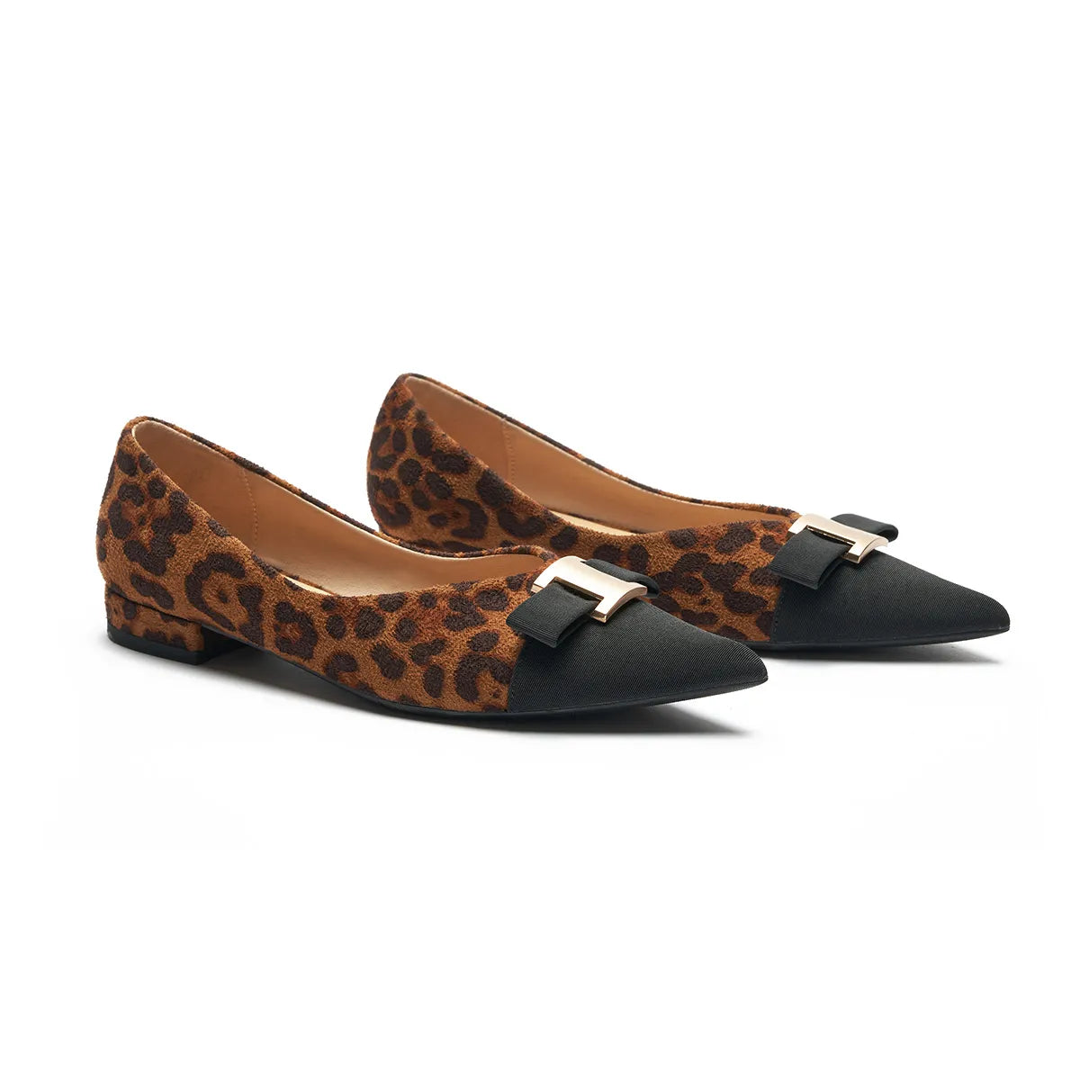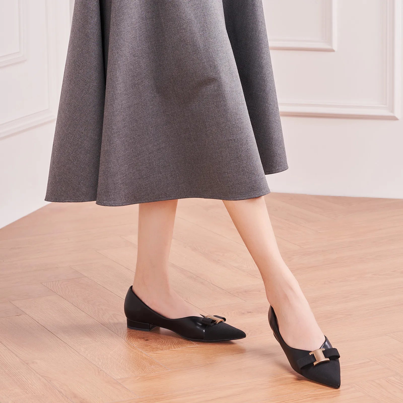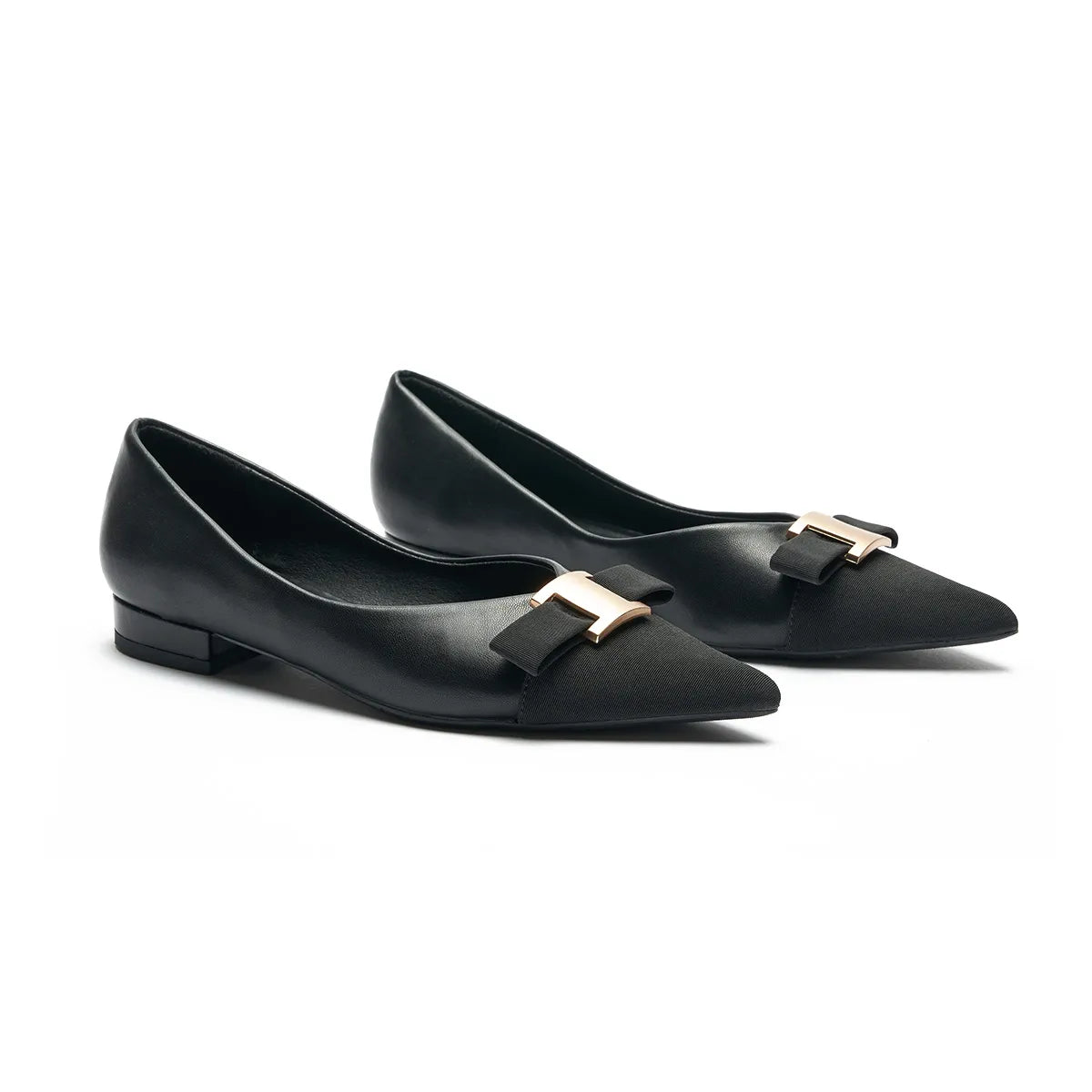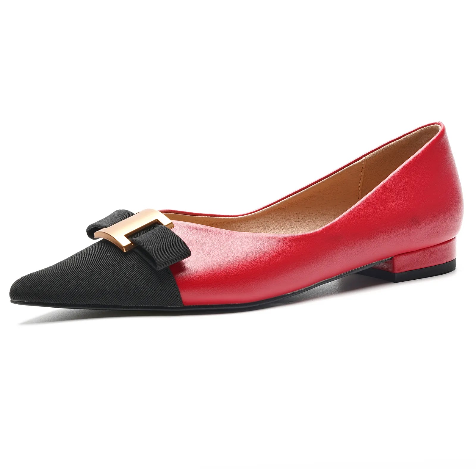 Boasting a unique dual-color, dual-material splicing design, these flats seamlessly blend two distinct hues and textures for a captivating visual impact. The bow with metal trim and a grippy sole adorned with iconic prints, exude feminine delicacy and strength. This pair is a statement of sophisticated lifestyle, balancing classic with fashion.