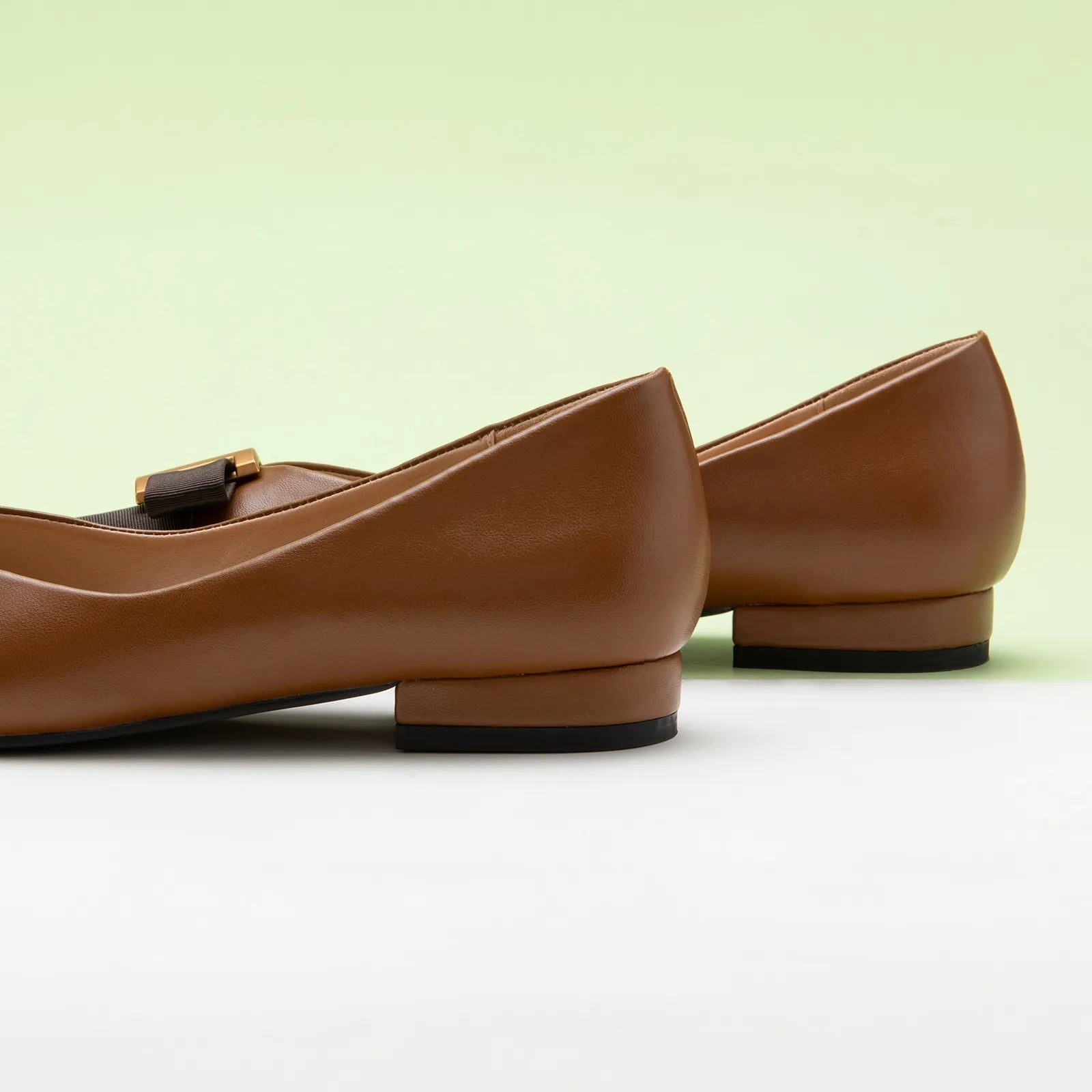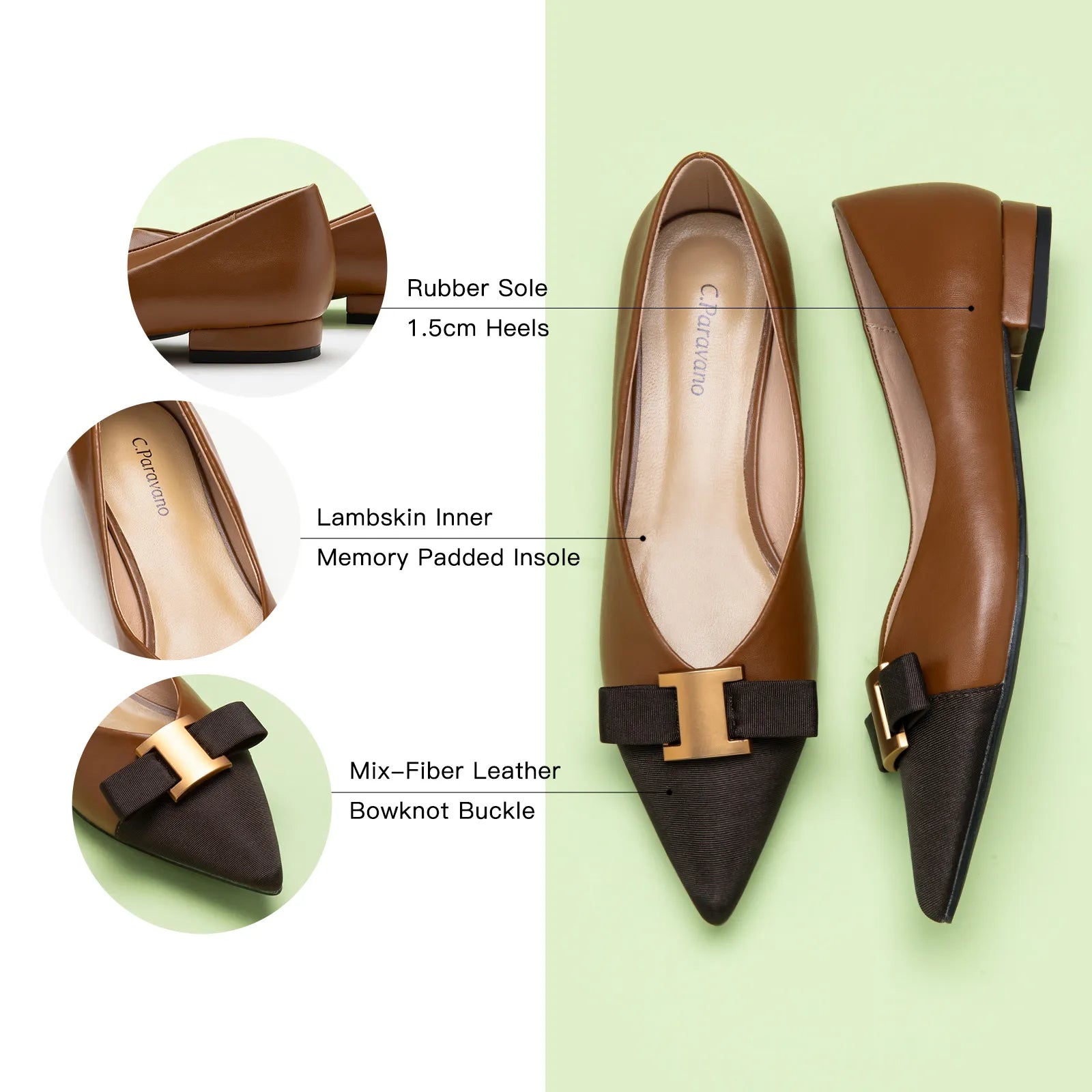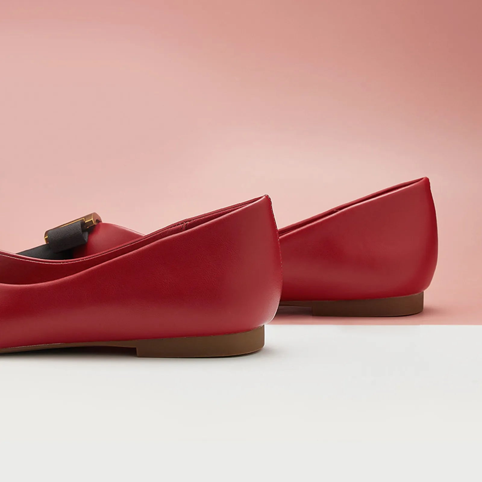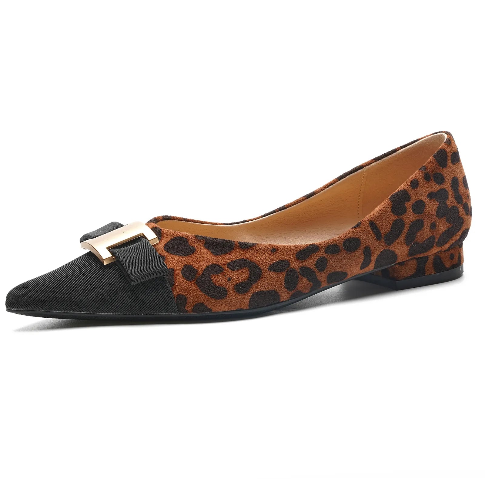 Boasting a unique dual-color, dual-material splicing design, these flats seamlessly blend two distinct hues and textures for a captivating visual impact. The bow with metal trim and a grippy sole adorned with iconic prints, exude feminine delicacy and strength. This pair is a statement of sophisticated lifestyle, balancing classic with fashion.
