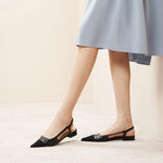- The elegant slingbacks silhouette has been elevated with exclusive details, including the exquisite animal prints and the classic two-toned colourway. Fitted with an adjustable slingback strap and effortless flat heel, these fashion slingbacks are also made to go the distance.