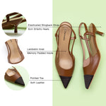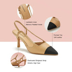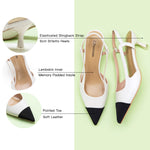 - The elegant pointed-toed silhouette and classic two-toned colourway effortlessly exudes sophistication and poise. Perched on classic 5.5cm stiletto heels, this pair is perfect for both work and off-duty events. Bonus points for the adjustable slingback strap that offer a secure and comfortable fit.