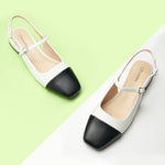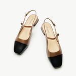 - These slingbacks adopt a square toe design, which is more accommodating to different foot shapes. The splicing design of the toe and the shoe body presents a structuralist aesthetic. The adjustable strap and buckle allows for a wider fit.